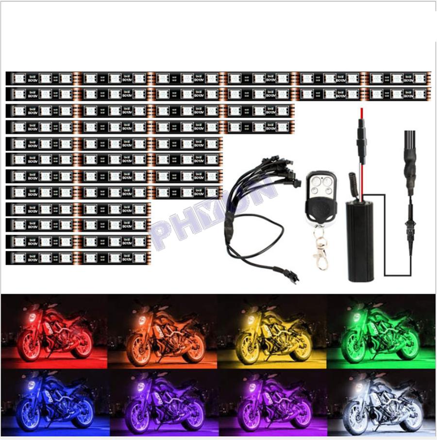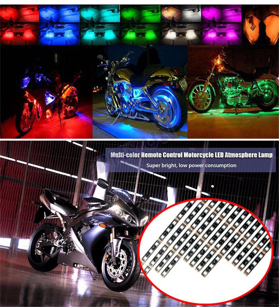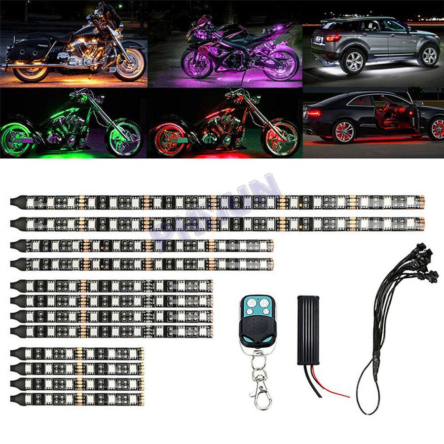 12x Motorcycle Scooter RGB LED Neon Under Glow Lights Strip Kit DC 12V Universal