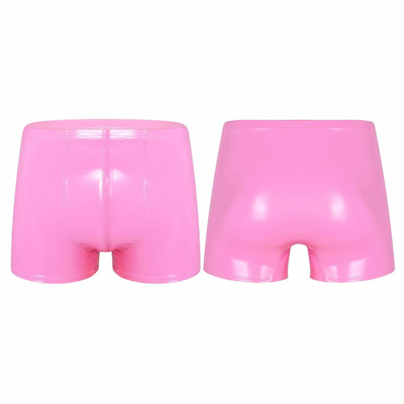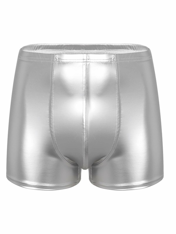 Mens Wet Look Patent Leather Shorts Bulge Pouch Boxer Brief Clubwear.