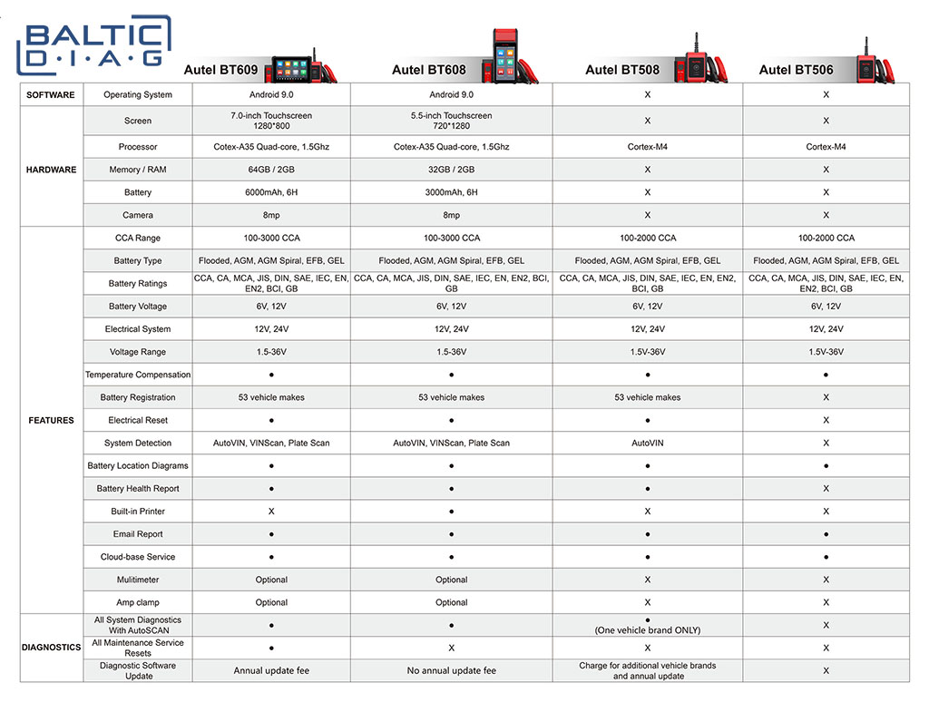 The Adaptive Conductance of the AUTEL MaxiBAS BT609 Wireless Battery and Diagnostic System is an advanced method of battery analysis that allows accurate determination of battery capacity and reserve capacity, which is critical for battery verification. 7 Android sensor screen tablet to quickly display the current battery health inches, register new battery systems and perform advanced battery and electrical diagnostics. BT609 features include AutoVIN to identify vehicle and battery information and display graphical battery positioning and testing instructions. Has a “service” menu. Read / delete codes in all available vehicle systems and perform routine maintenance. Print or share reports over Wi-Fi.