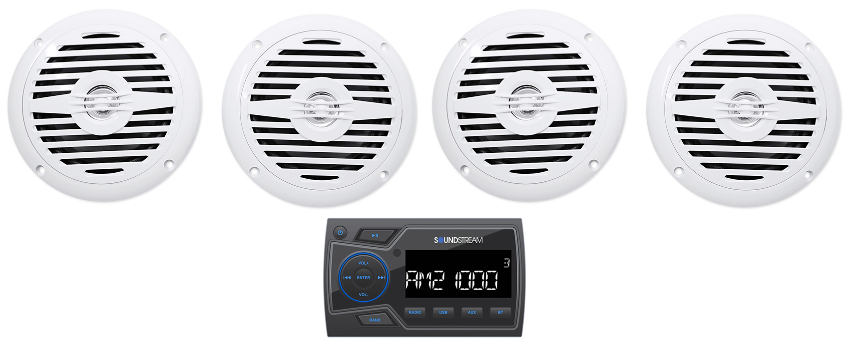 Soundstream MHU-32 Marine Boat ATV/UTV Bluetooth Receiver+4 White 5.25" Speakers