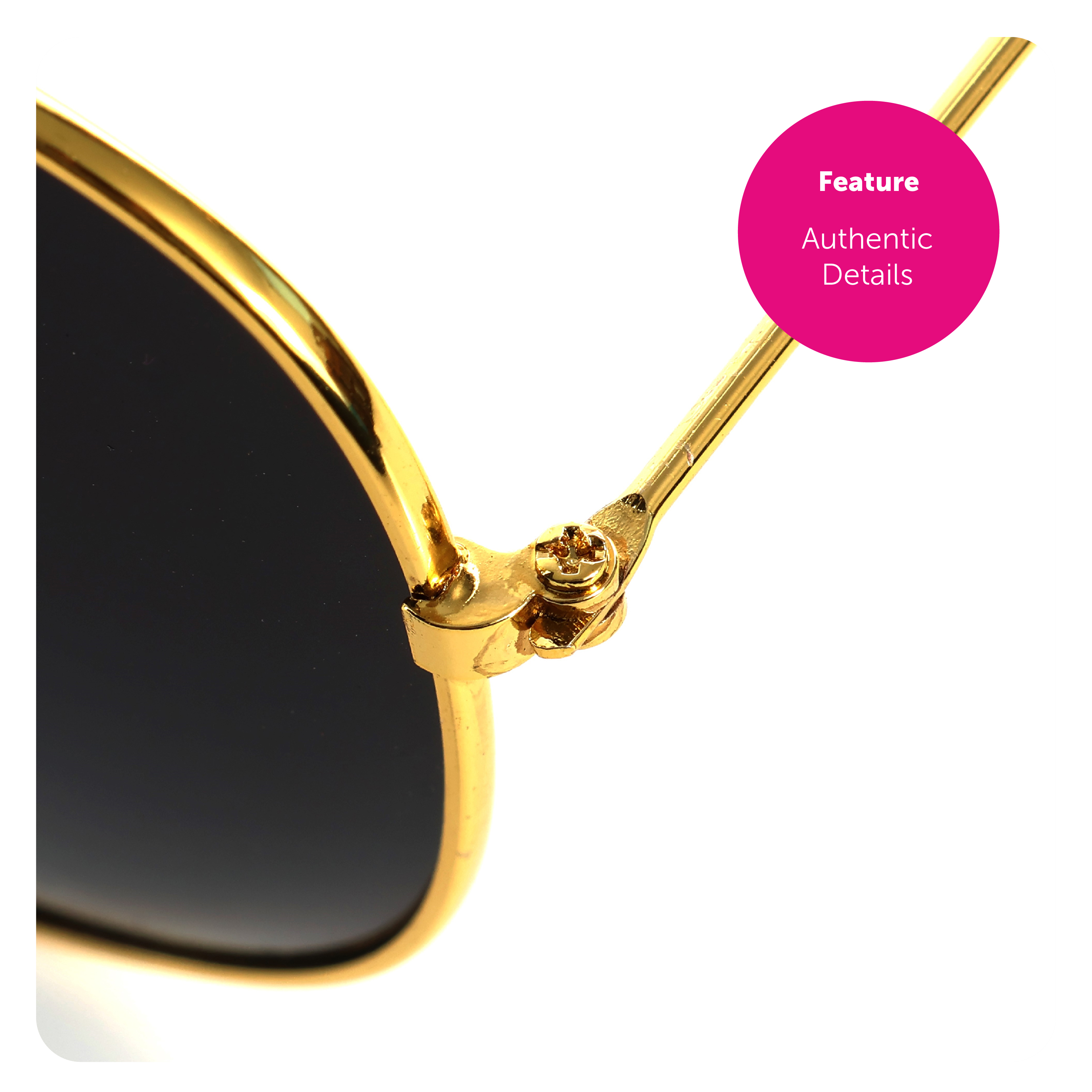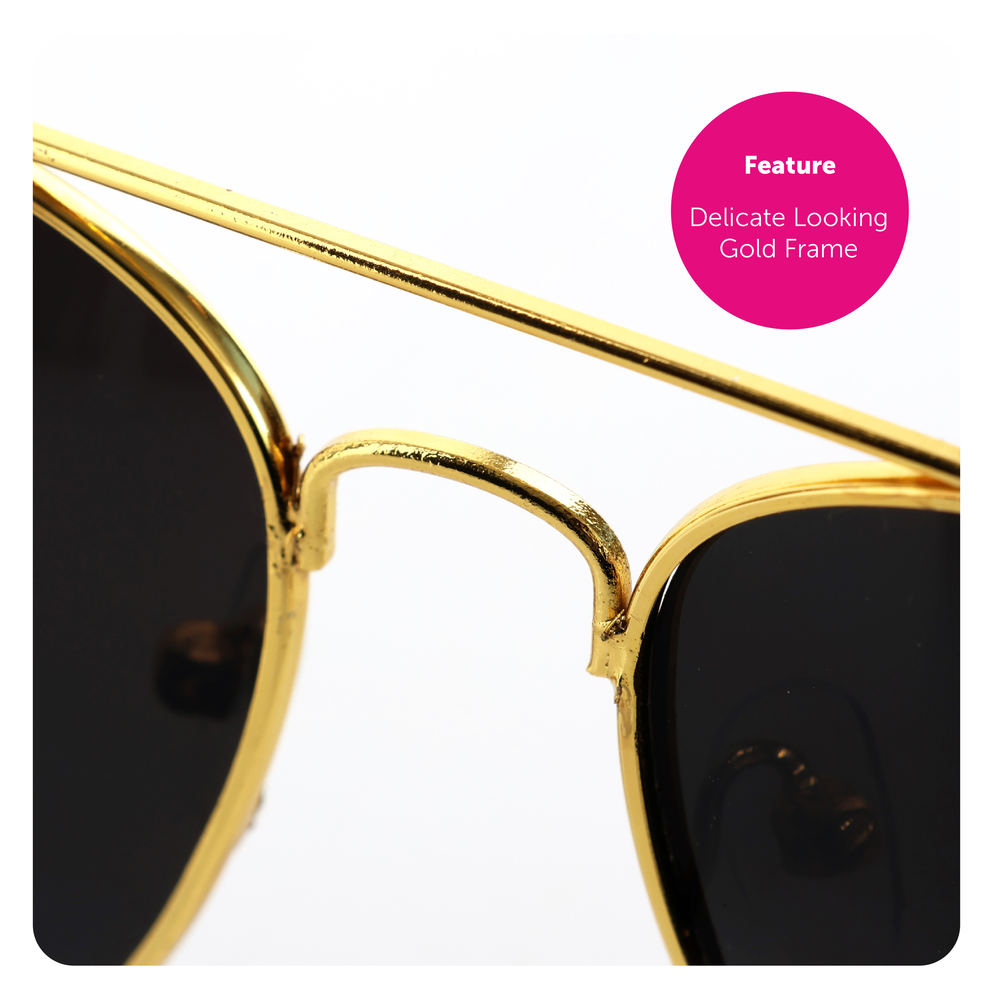 AVIATOR SUNGLASSES DETAIL: Your Sunglasses have black lenses in a delicate looking, durable, Gold Frame and will comfortably fit anyone’s face regardless of age and size!