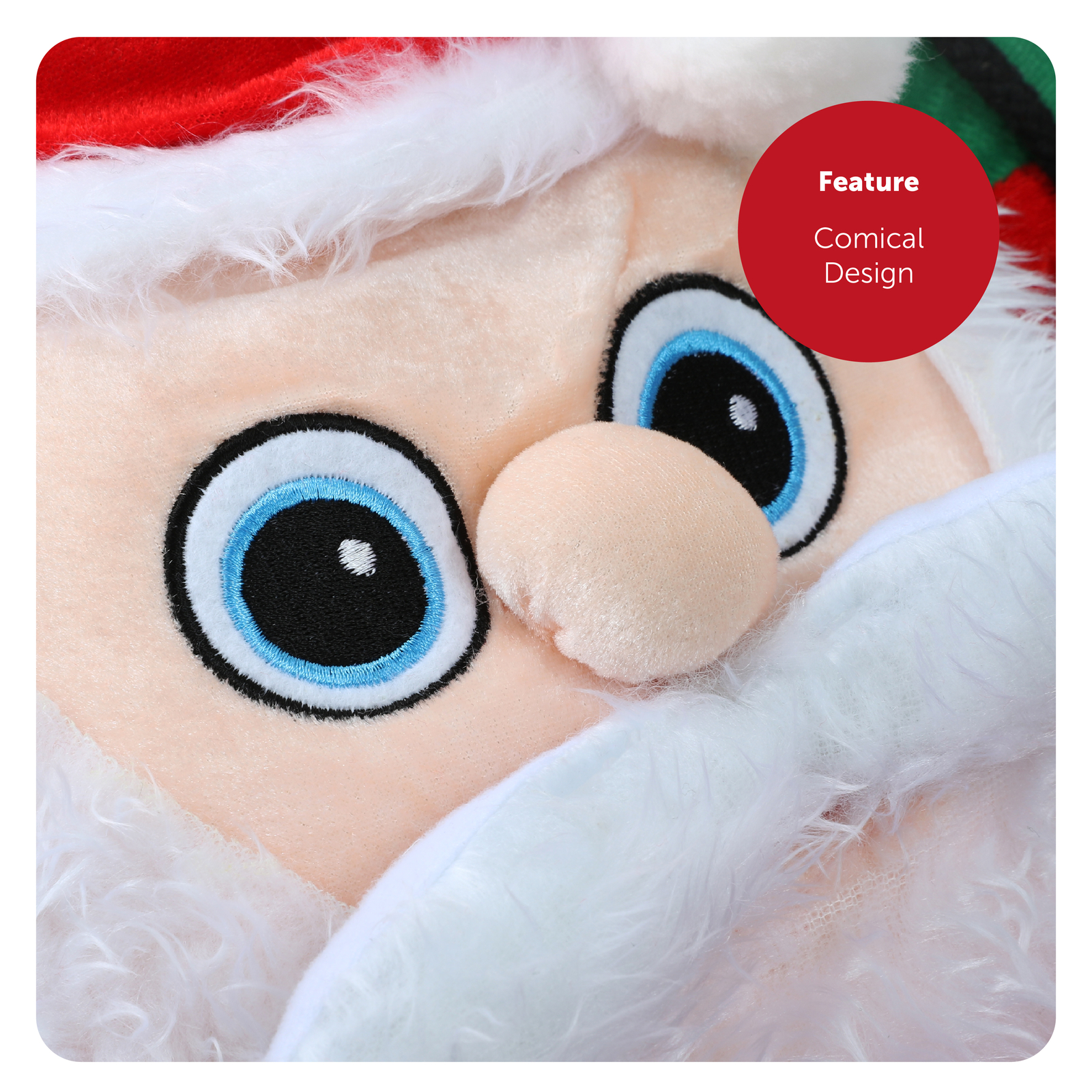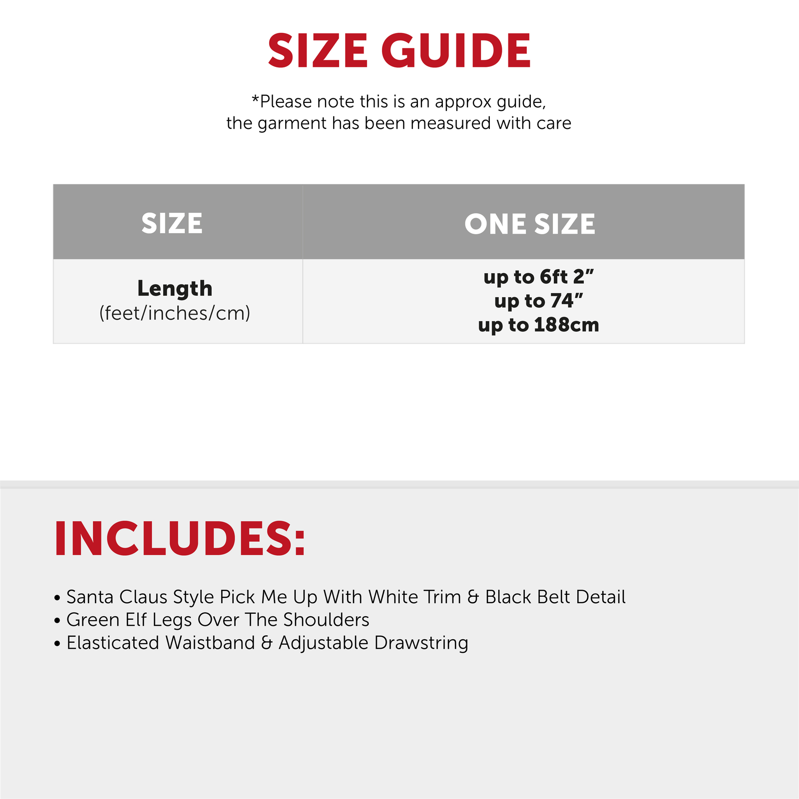 INCLUDES THE PLUSH SANTA COSTUME TROUSERS WITH ATTACHED STUFFED ELF LEGS.