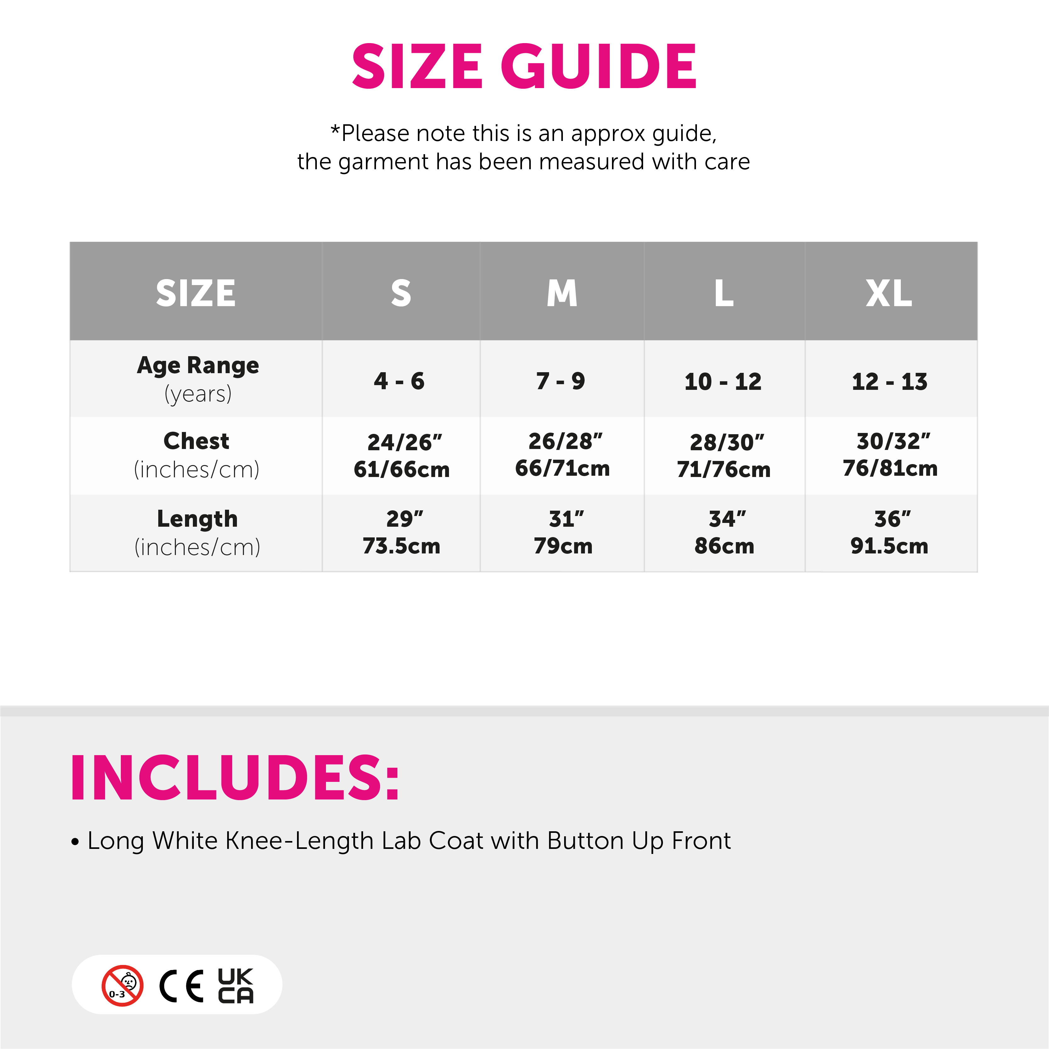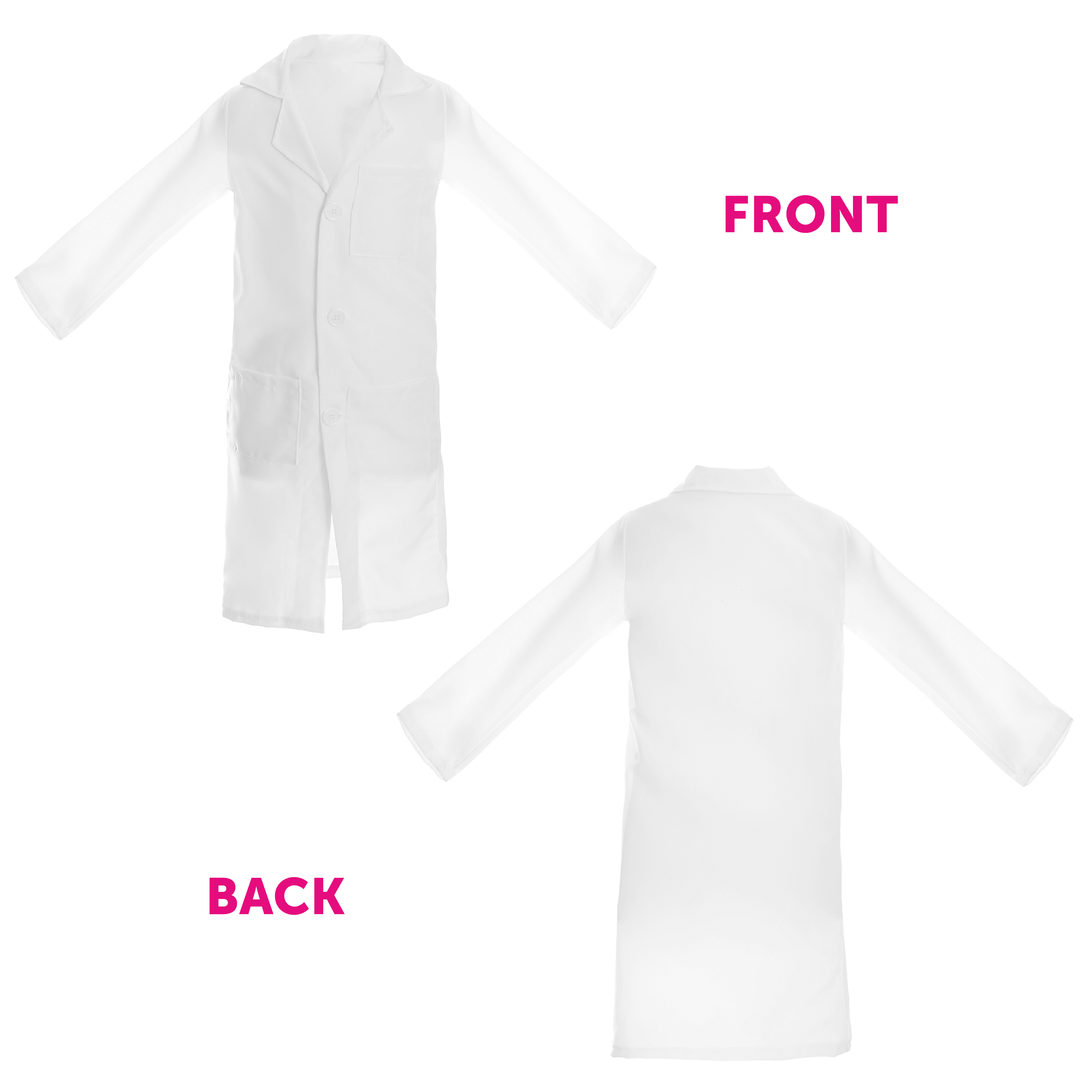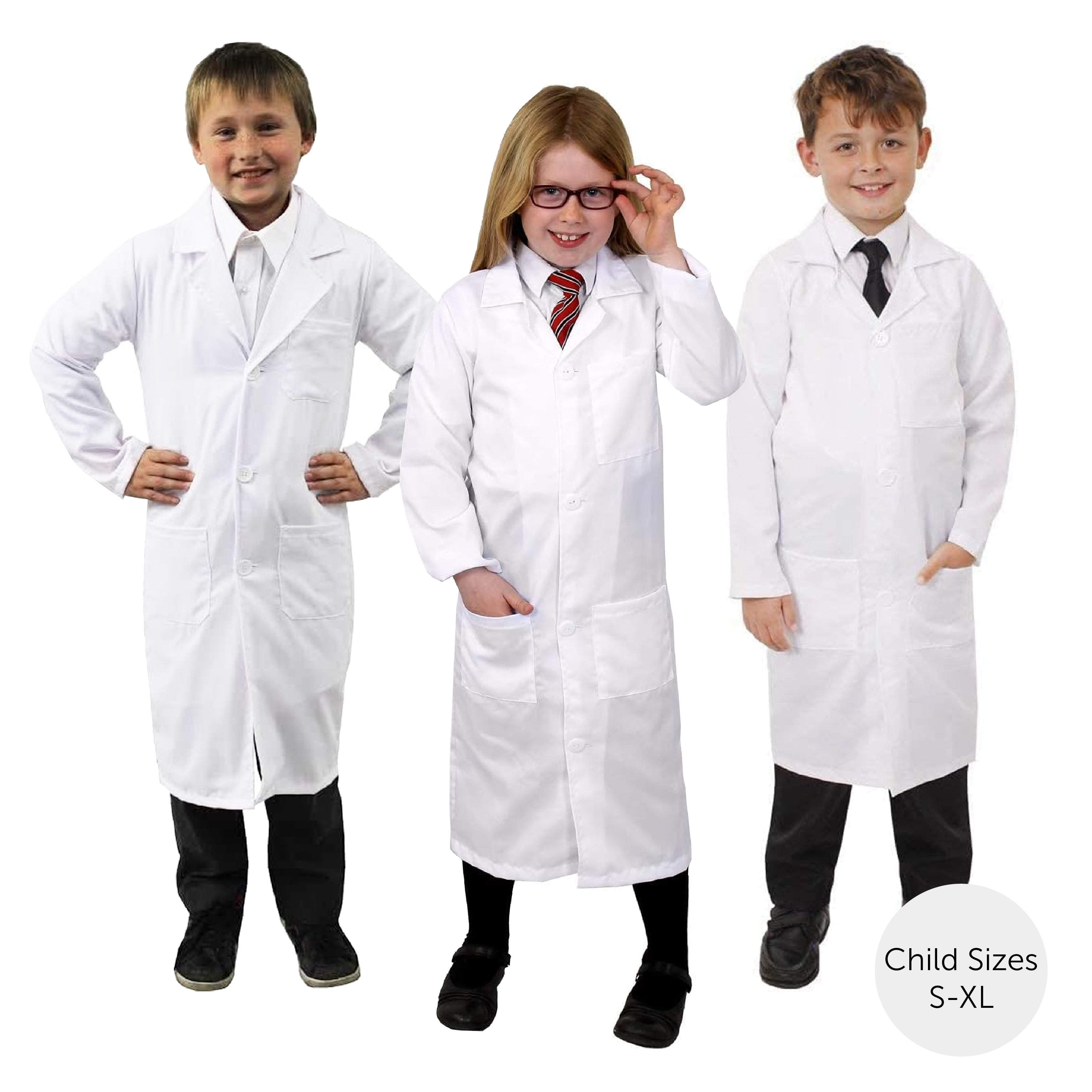 COAT DETAILS: The Lab Coat is a Long White Coat with great sized pockets and designed with comfortable and easy Button up fastening, perfect for any costume ideas!