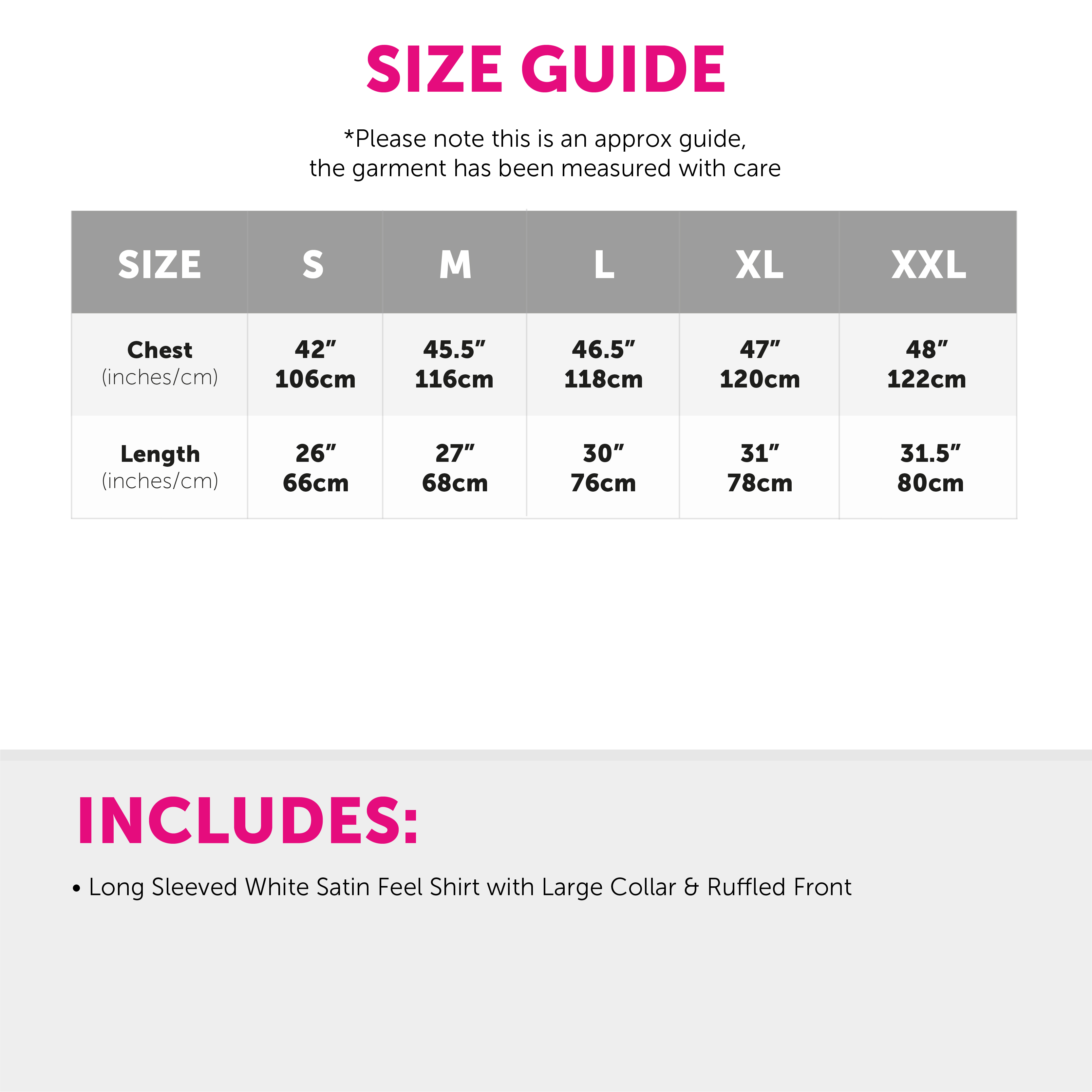 AVAILABLE IN MULTIPLE SIZES: Your Adults White Disco Shirts are available in multiple sizes from Small – XX-Large!