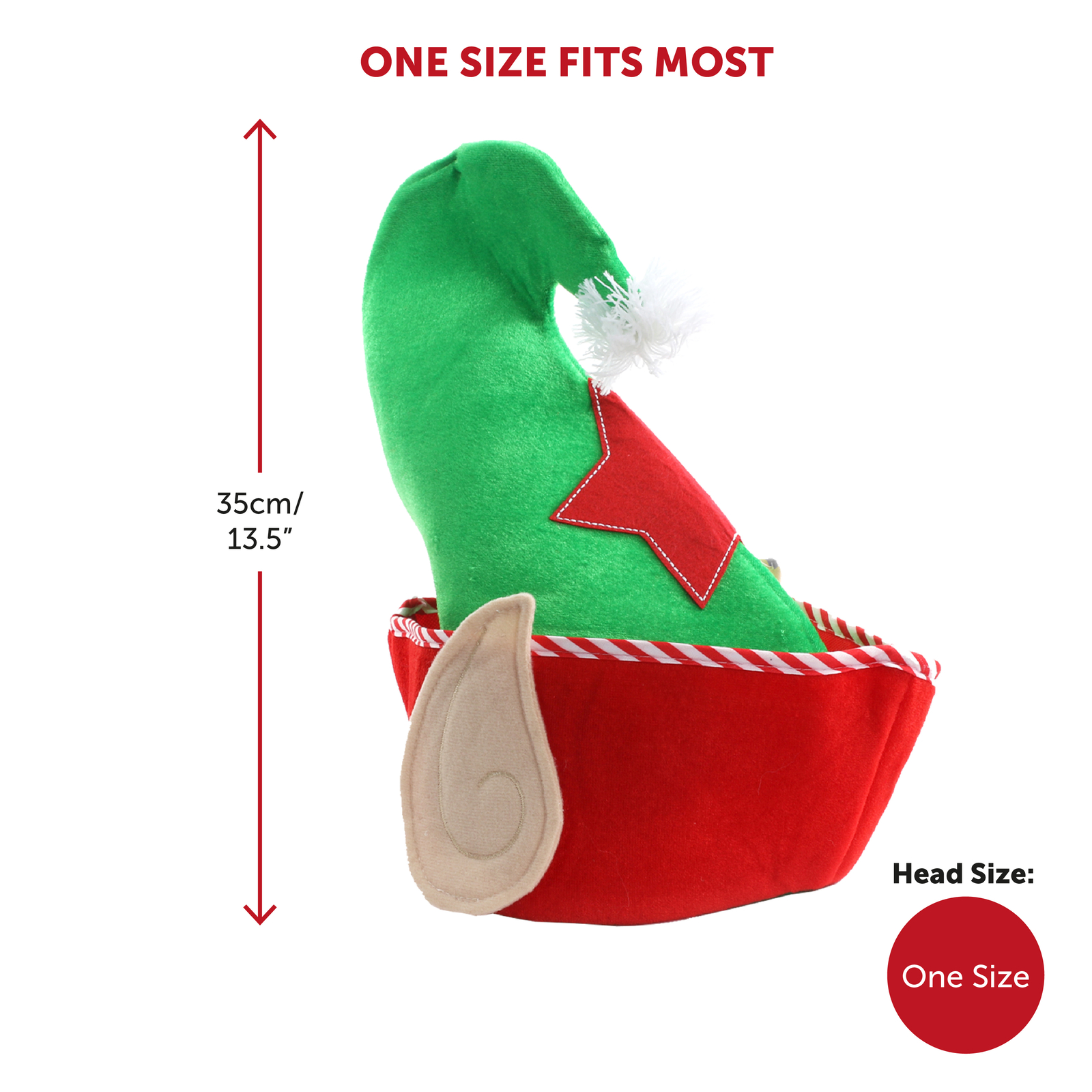 FELT STRIPED ELF HAT AND LARGE WHITE BOBBLE
