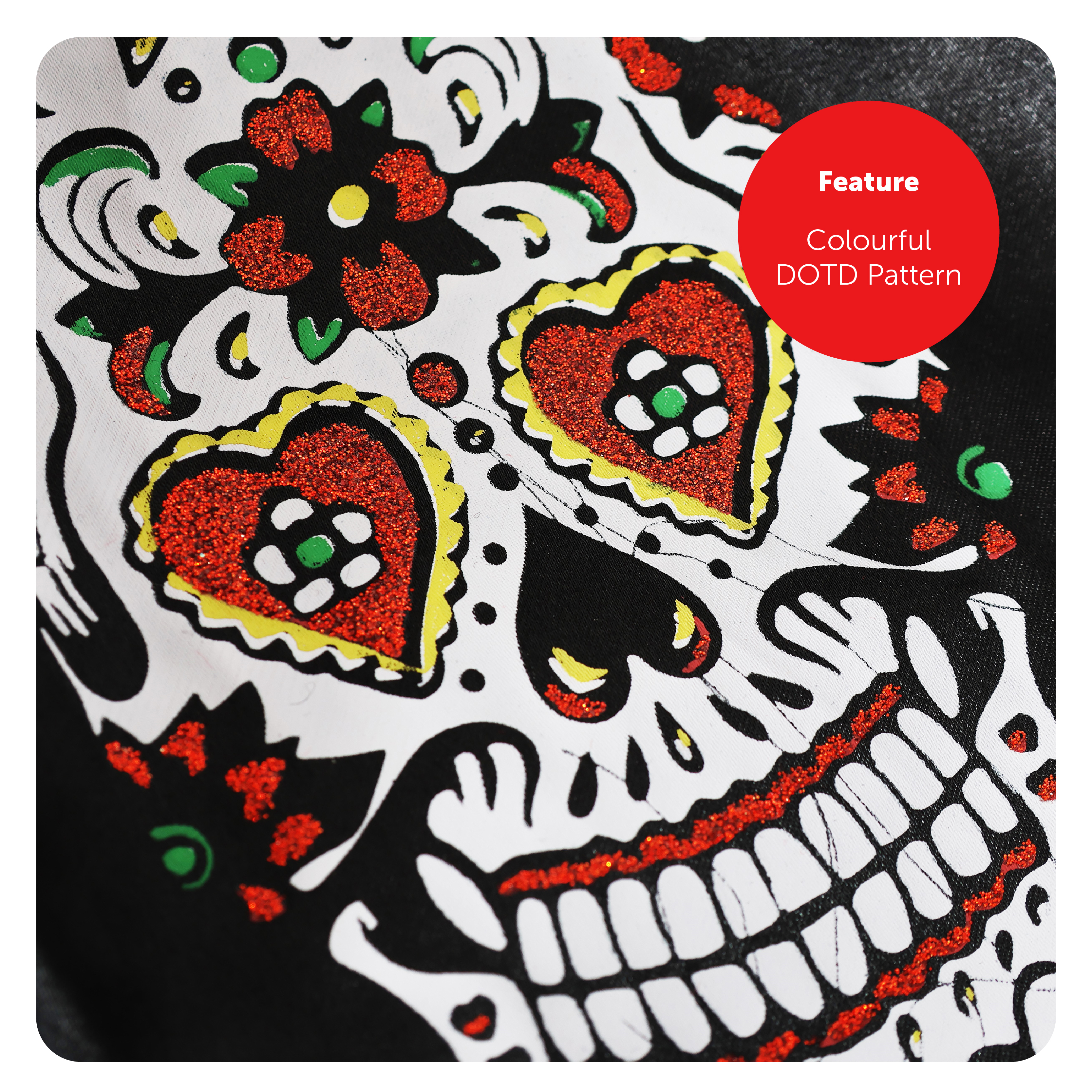 AND SUGAR SKULLS PRINTED ON SKIRT