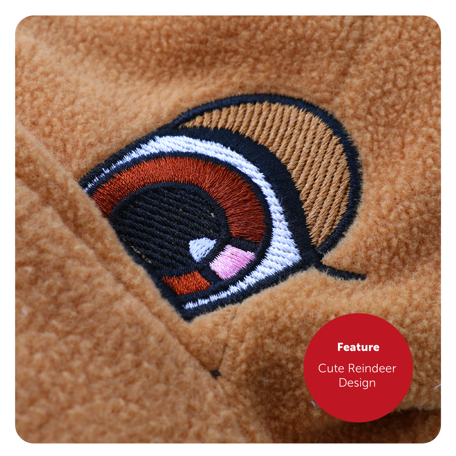 ATTACHED PADDED HEAD/HOOD WITH RED NOSE, EYES AND ANTLERS