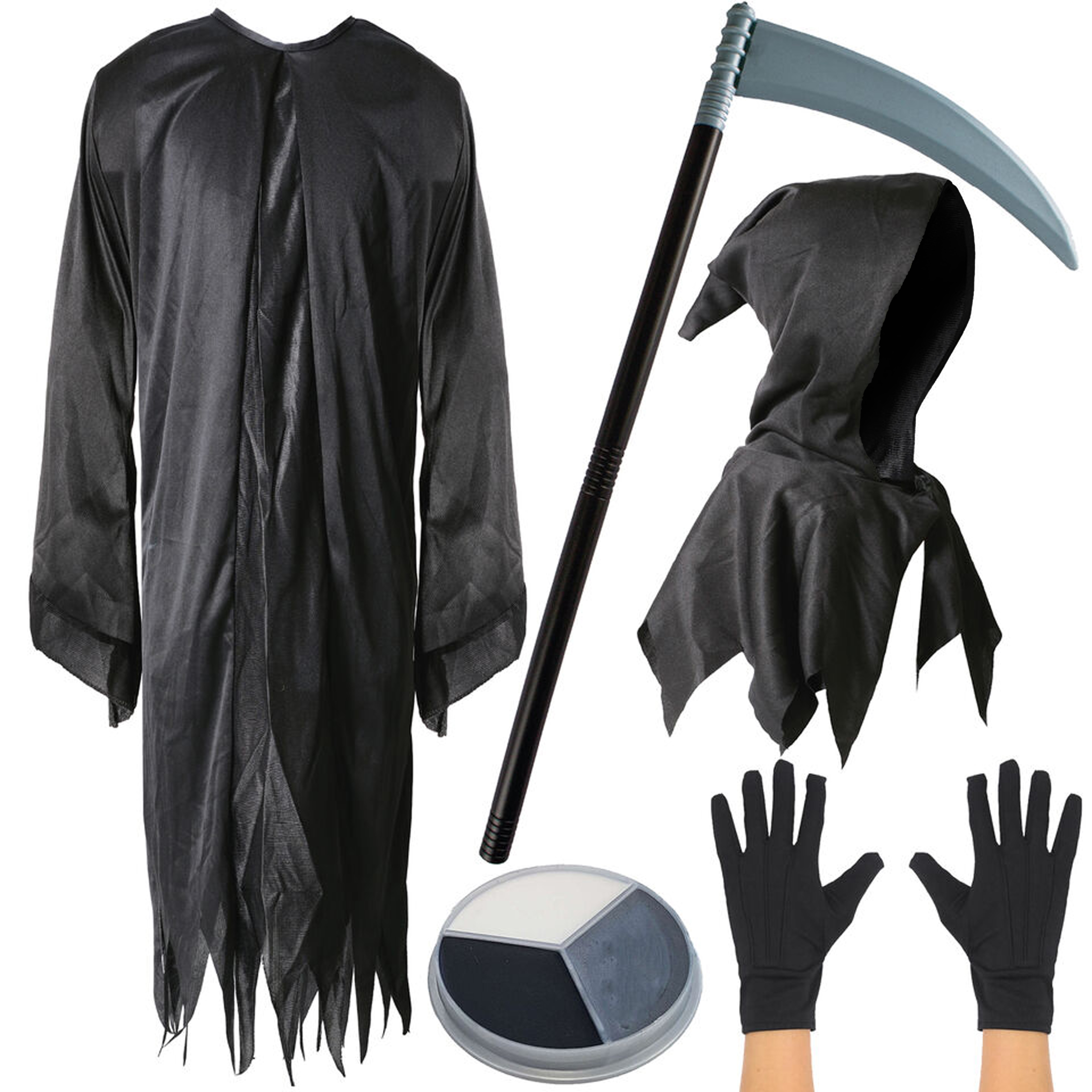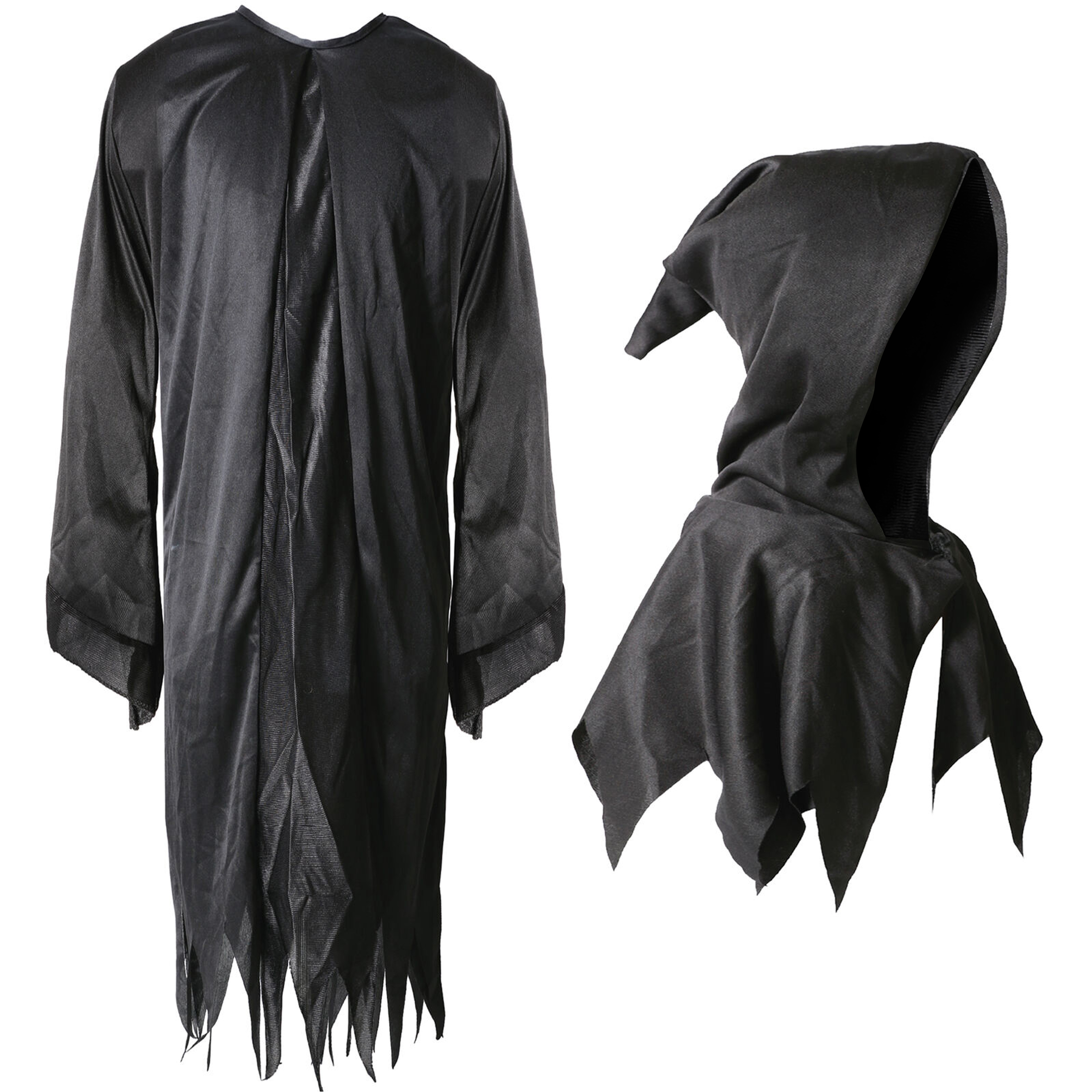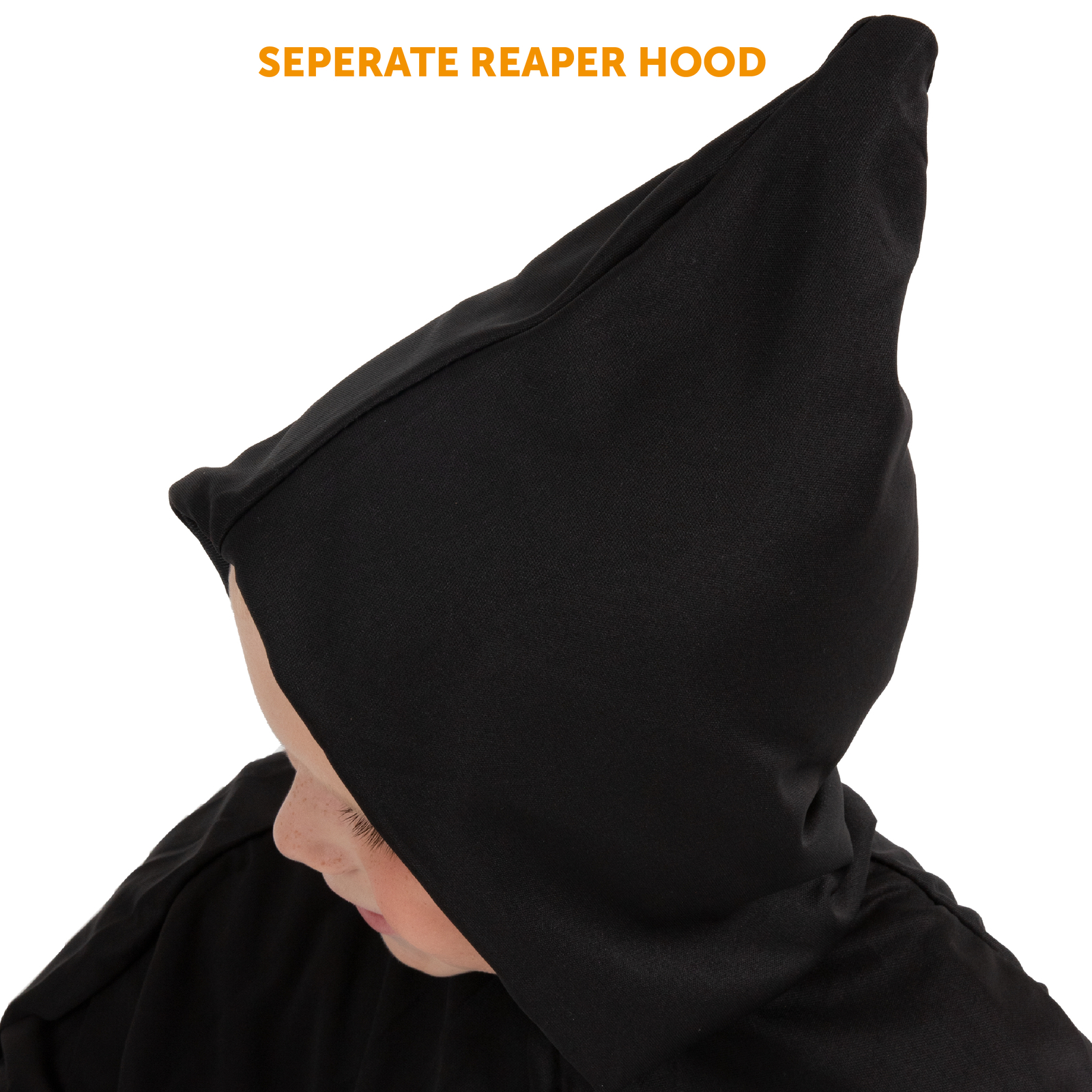 REAPER COSTUME DETAILS: Your Child Reaper Costume includes a Black Ragged Reaper Robe with a Separate Matching Black Hood, a ghoulish and ghostly robe and hood to complete your Reapers appearance