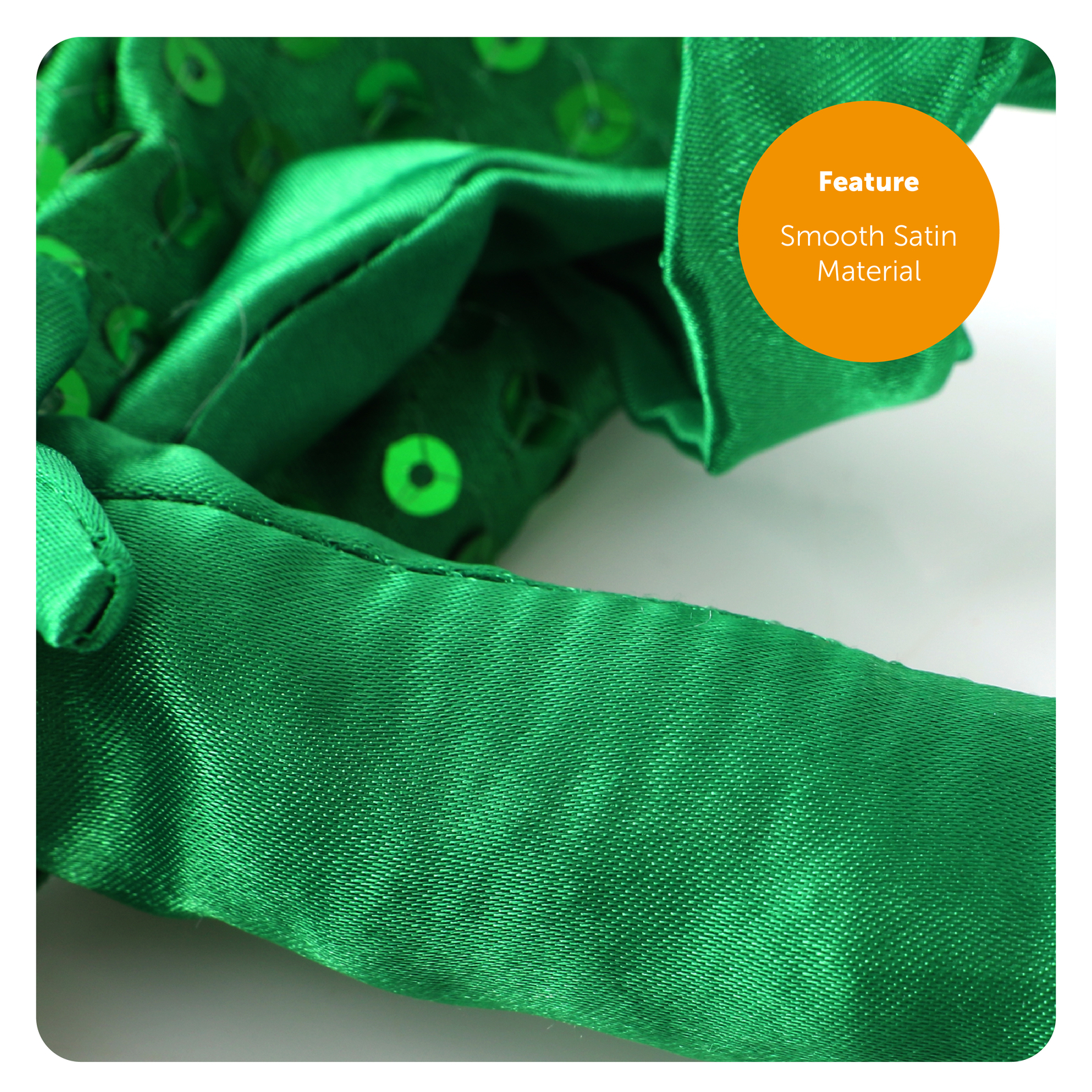 GREEN SATIN HEADBAND WITH STEM AND SEQUIN LEAVES ATTACHED