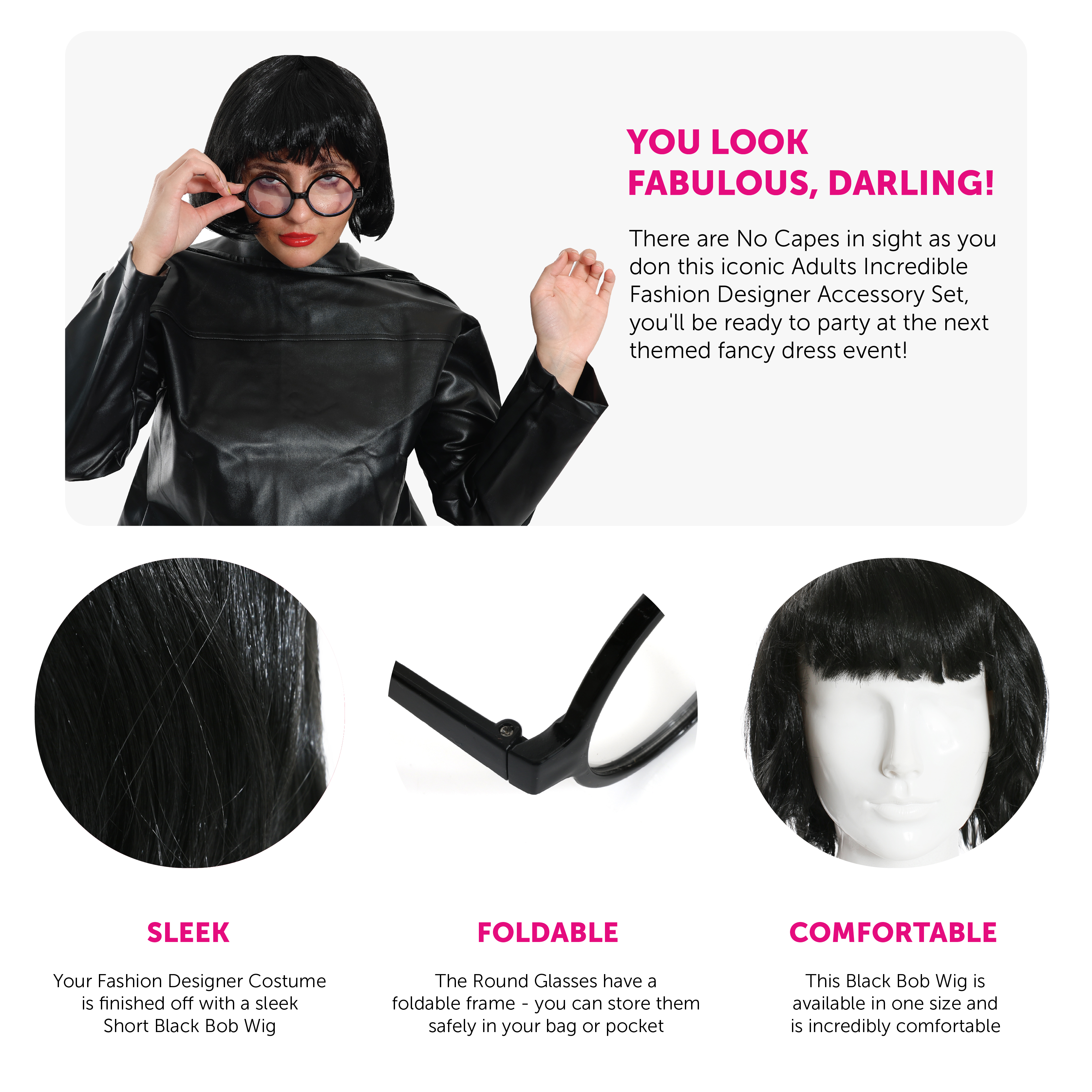 INCREDIBLE FASHION DESIGNER ACCESSORY SET: There are No Capes in sight as you don this iconic Adults Incredible Fashion Designer Accessory Set, you'll be ready to party at the next themed fancy dress event!