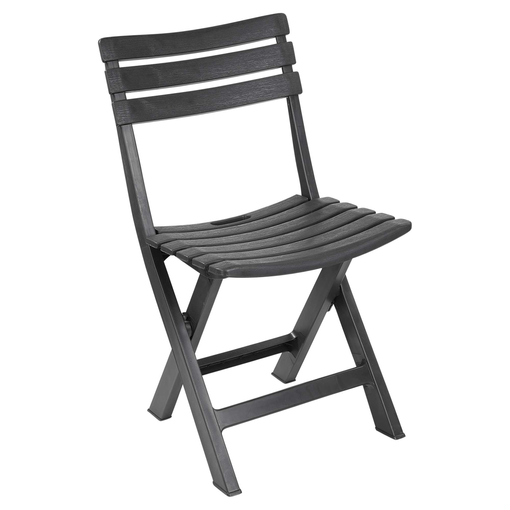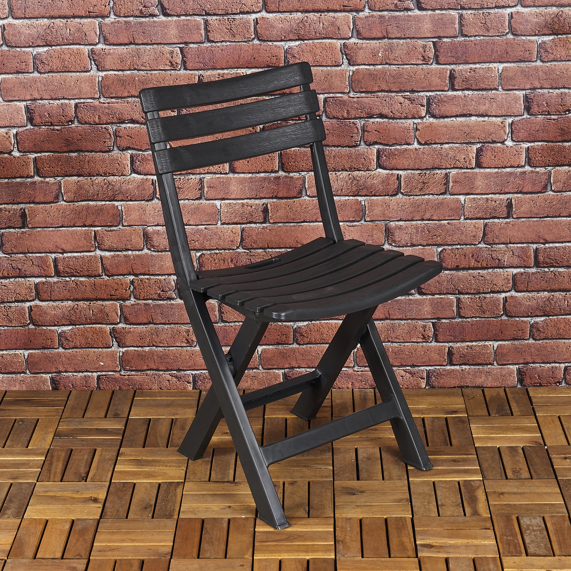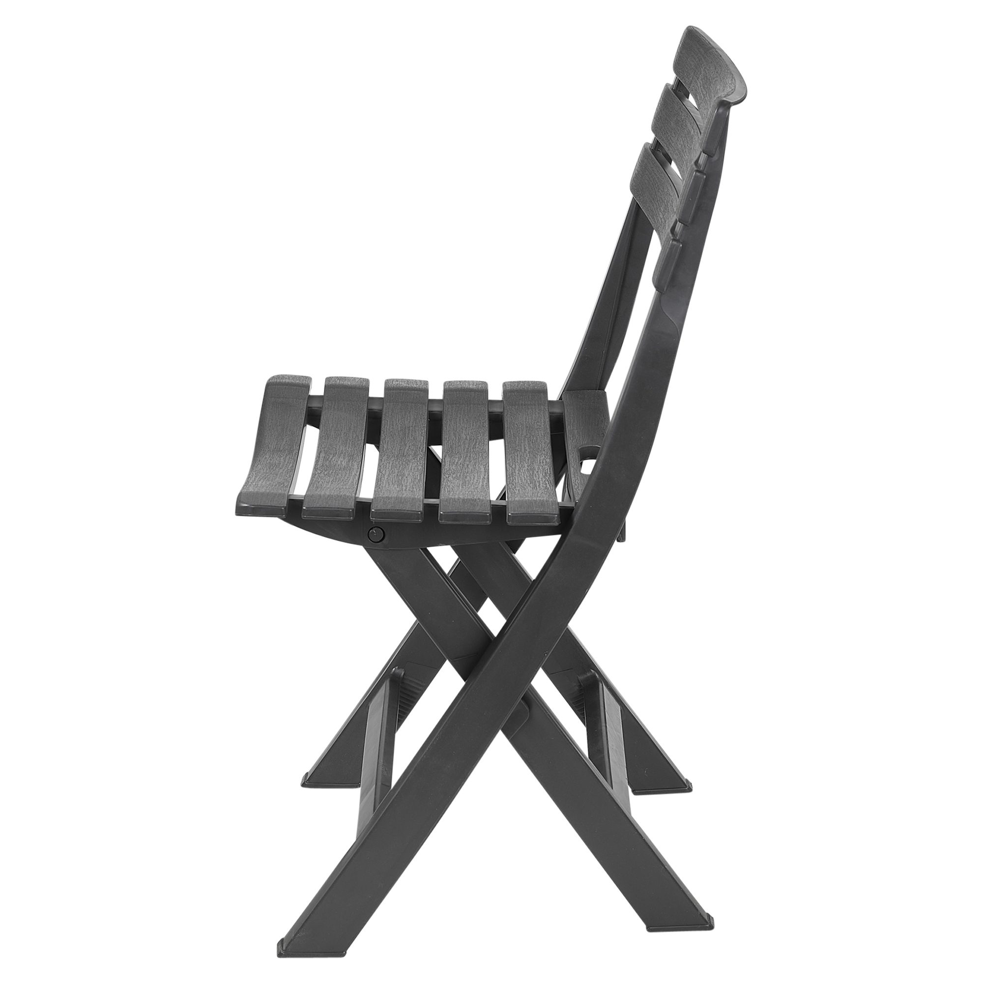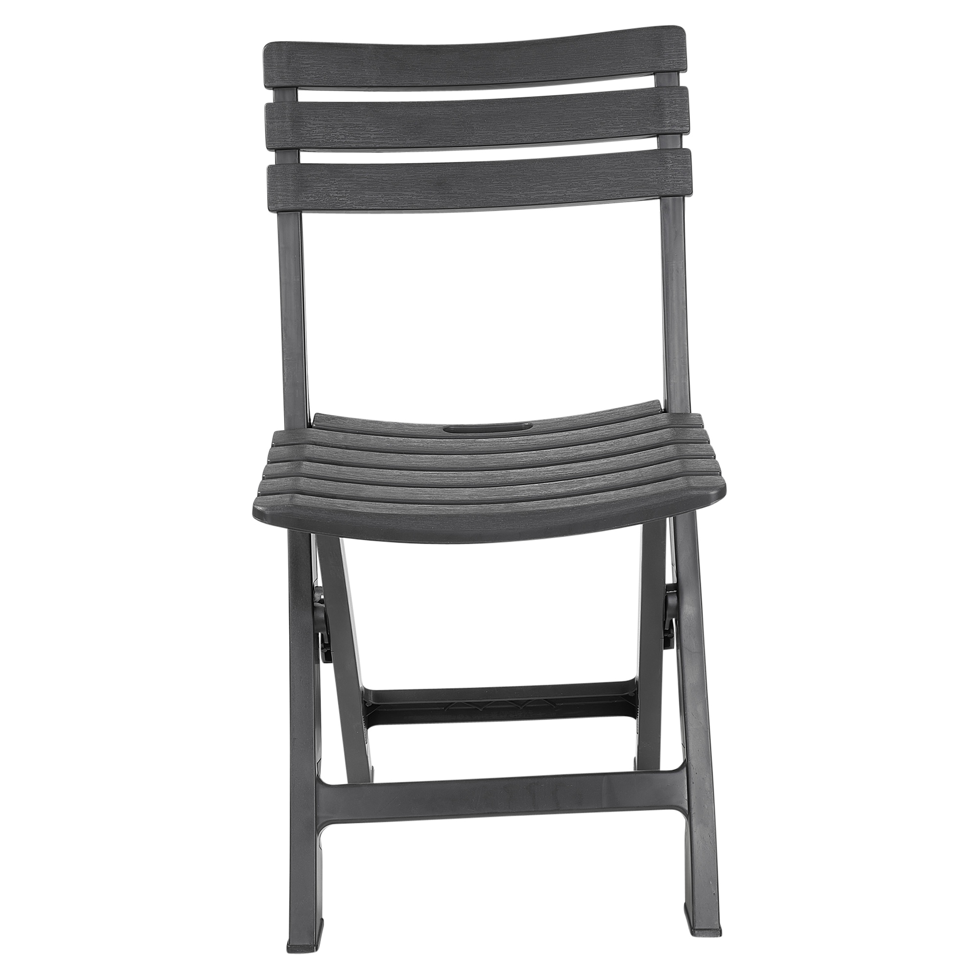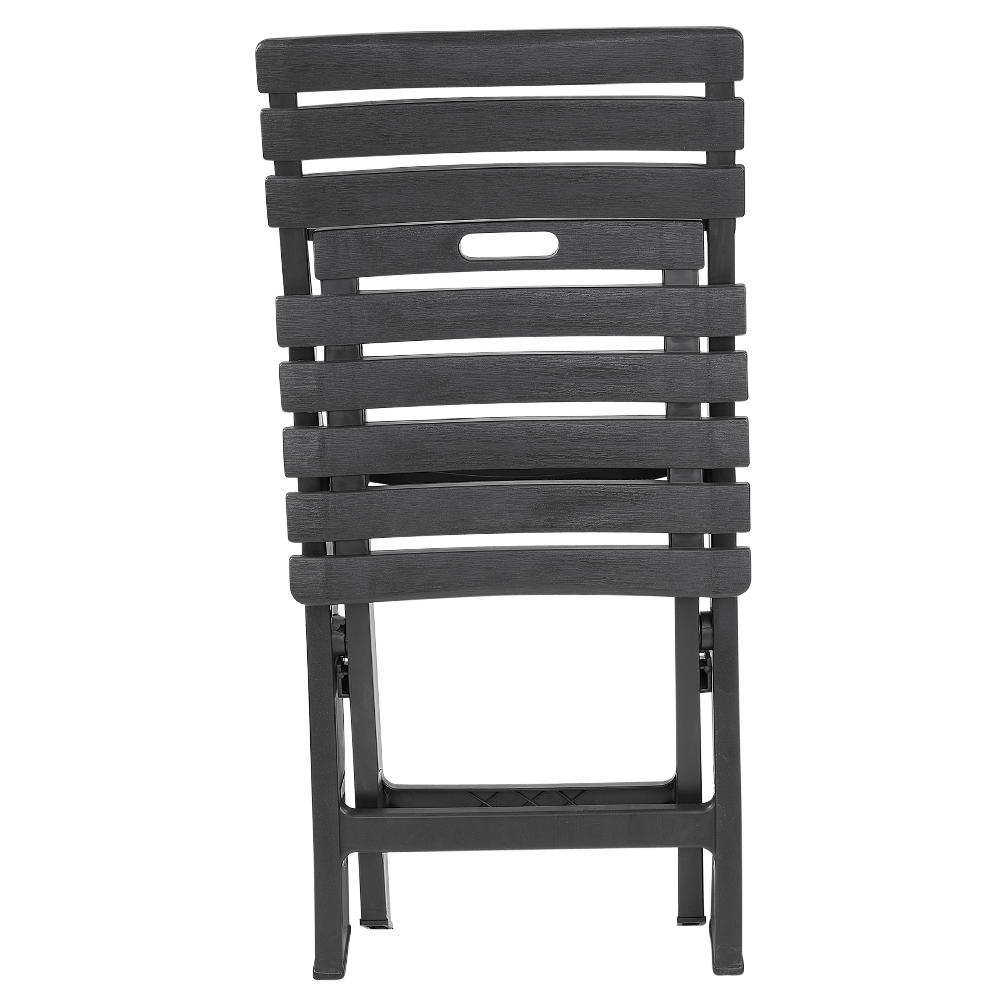 Extra guests? Whip out the URBN-LIVING plastic folding chair. Constructed from robust plastic, the comfy chair has a slatted surface, so any rain will runoff. It is made from durable plastic in an anthracite colour for that minimalist look, and it folds flat to a slim depth of just 7cm. This means you can easily tuck it away 'til it's needed next.