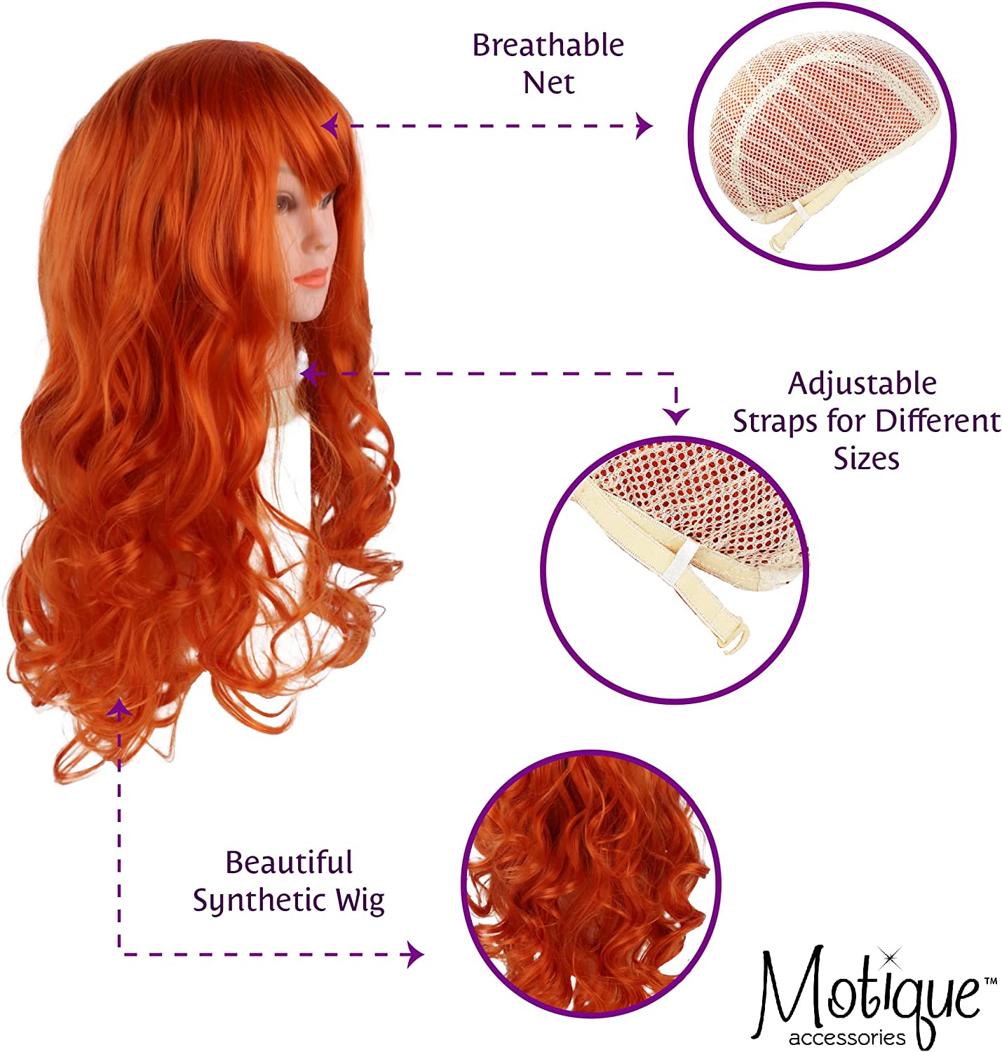 It’s cute, fun, comfortable to wear and it’s at an affordable price! With our synthetic orange daphne wigs there are no mysteries to be solved! This wavy wig is the perfect costume choice for Halloween, or any themed dress up parties. Wow your friends with this fun yet stylish realistic look. It’s Party Time!