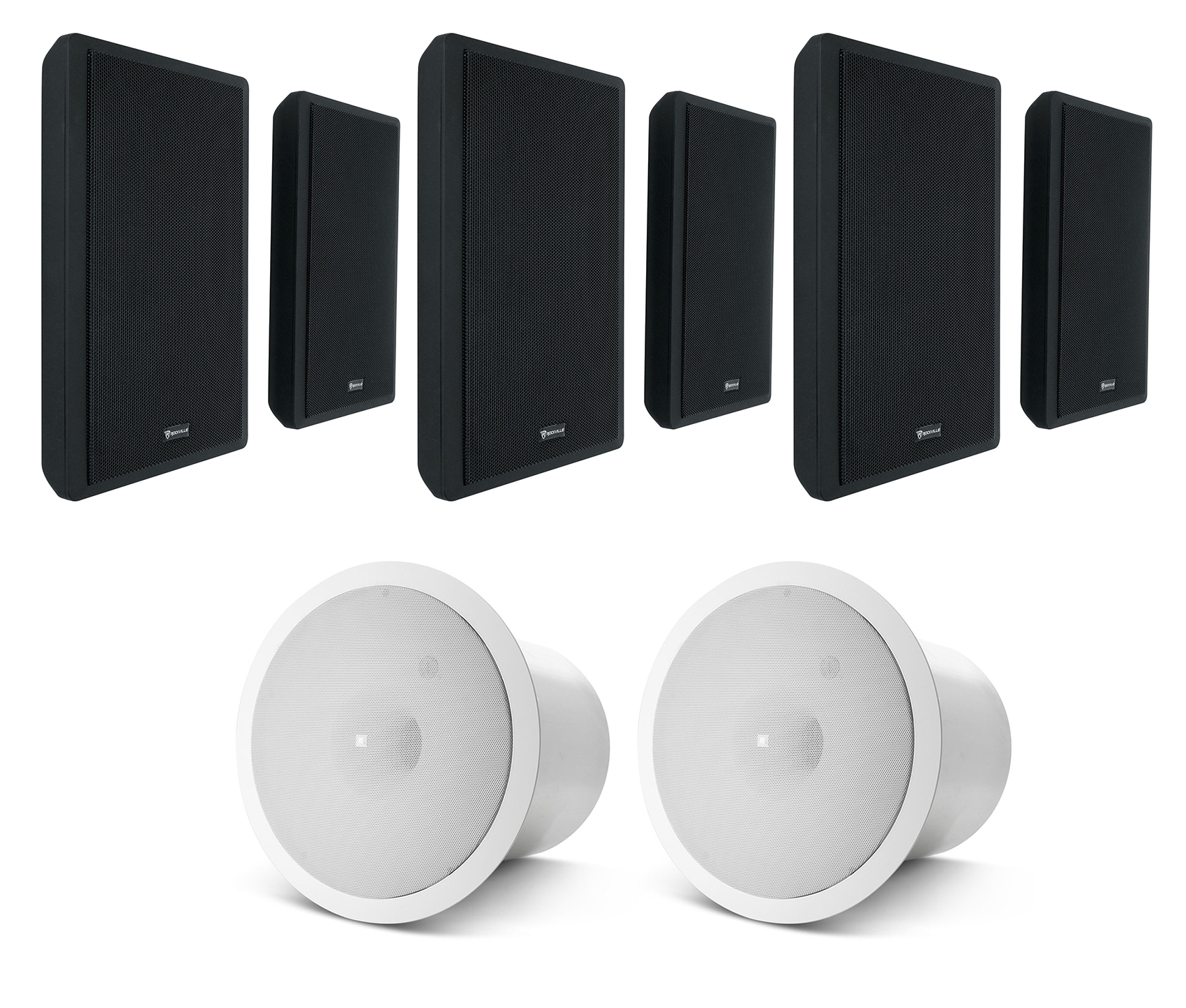 Package: Pair of Rockville RockSlim Black 5.25" 240 Watt Home Theater Slim Speakers with Easy Wall Mount Brackets + Pair JBL CONTROL 19CS 8" 200 Watt In-Ceiling Home Subwoofers 8-Ohm Subs