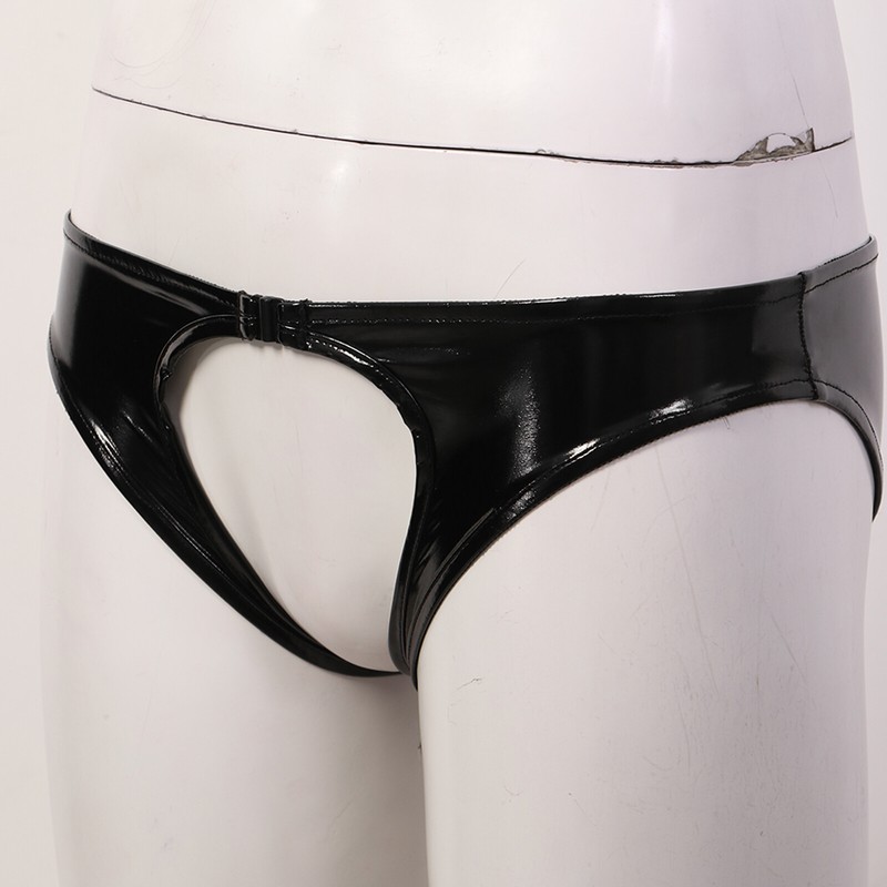 Womens Wet Look Patent Leather Crotchless Thongs Low Waist Open Butt Briefs.