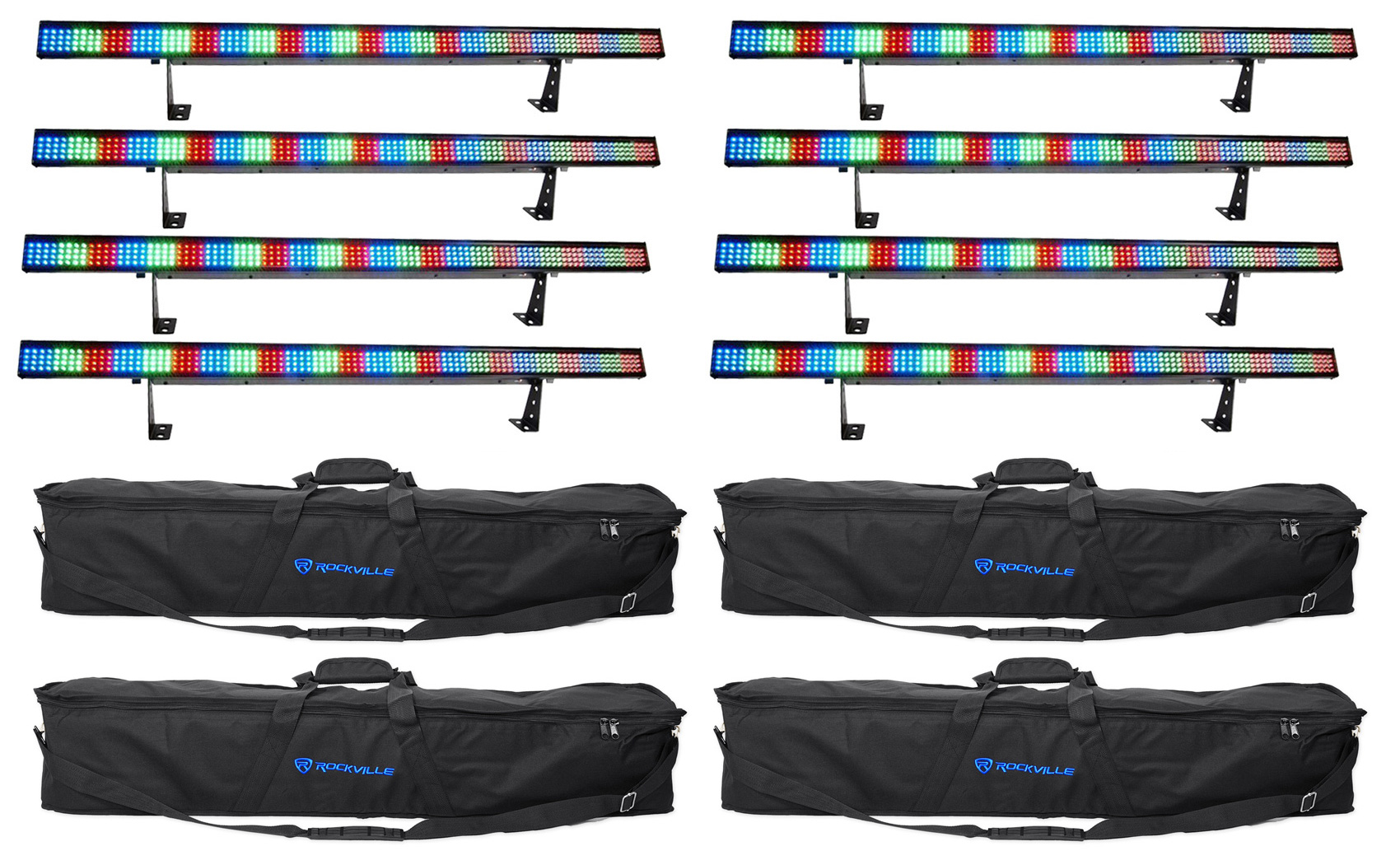 Package: (8) Chauvet COLORSTRIP LED DMX Multi Colored Light Bars + (4) Rockville RLB60 Bags With Padded Compartments and Shoulder Strap
