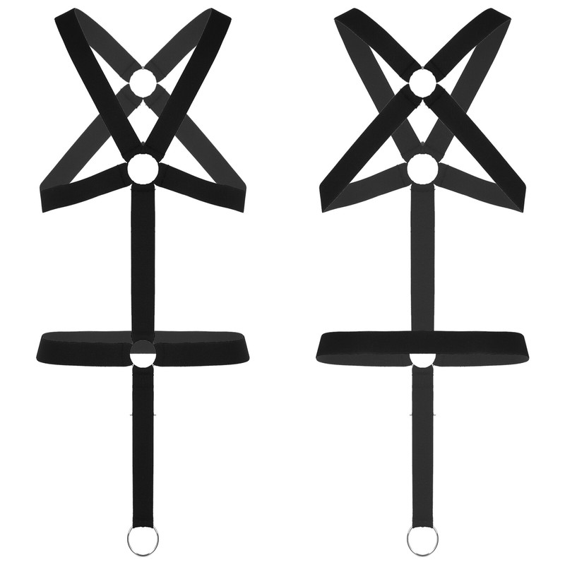 Sleeveless and deep scoop neck, cut out front and back, with bulge pouch, pull on closure.