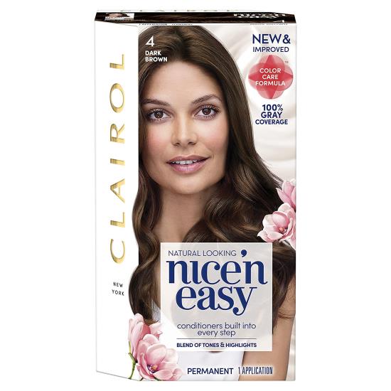 New Clairol Nice 'n Easy Permanent Hair Color, 4 Dark Brown, 1 Kit