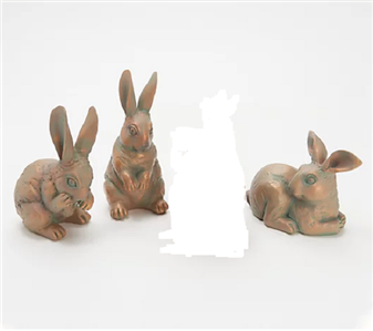 Condition: This item is brand new, however the box arrived very damaged and is missing one baby bunny. It was originally a 5 piece set. You are only getting 4 pieces, the momma bunny and 3 baby bunnies.