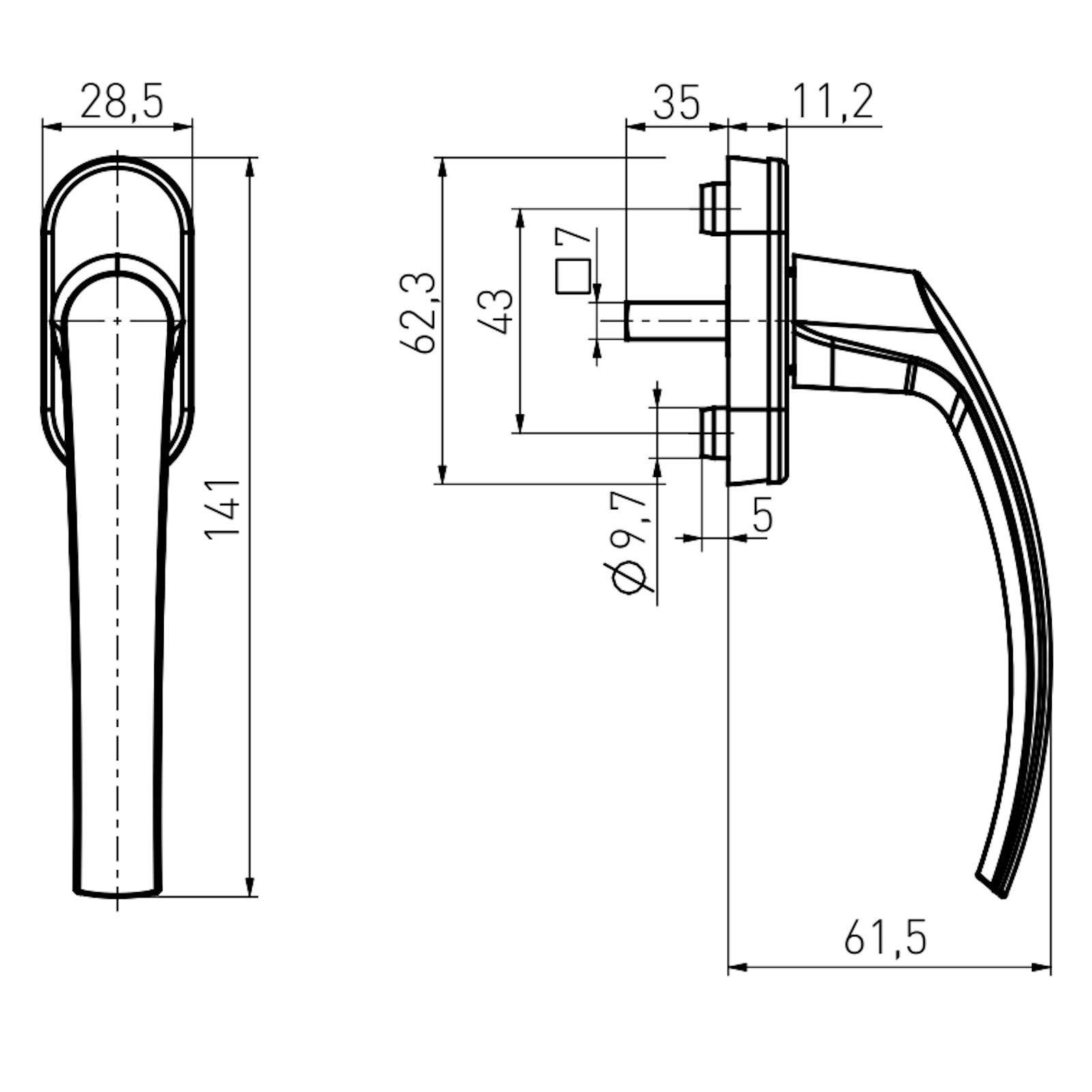Unser Fenstergriff Kolja wertet jedes Fenster problemlos auf. Die Farbe des Fensters spielt dabei keinerlei Rolle, da sich der Griff durch sein weißes Design jeder Oberfläche anpasst.
