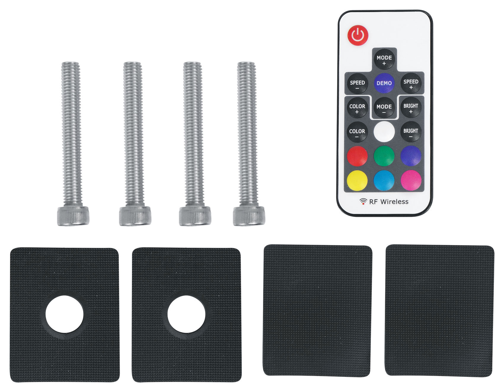 You get a pair of 5.25" waterproof speakers in a stainless steel enclosure with a chrome grill. Each speaker is equipped with a 1" titanium dome tweeter and a 5.25" woofer. Each speaker can handle 125 watts RMS and 250 watts peak! The built in LED's are controlled through the included remote and you can toggle colors and programs.