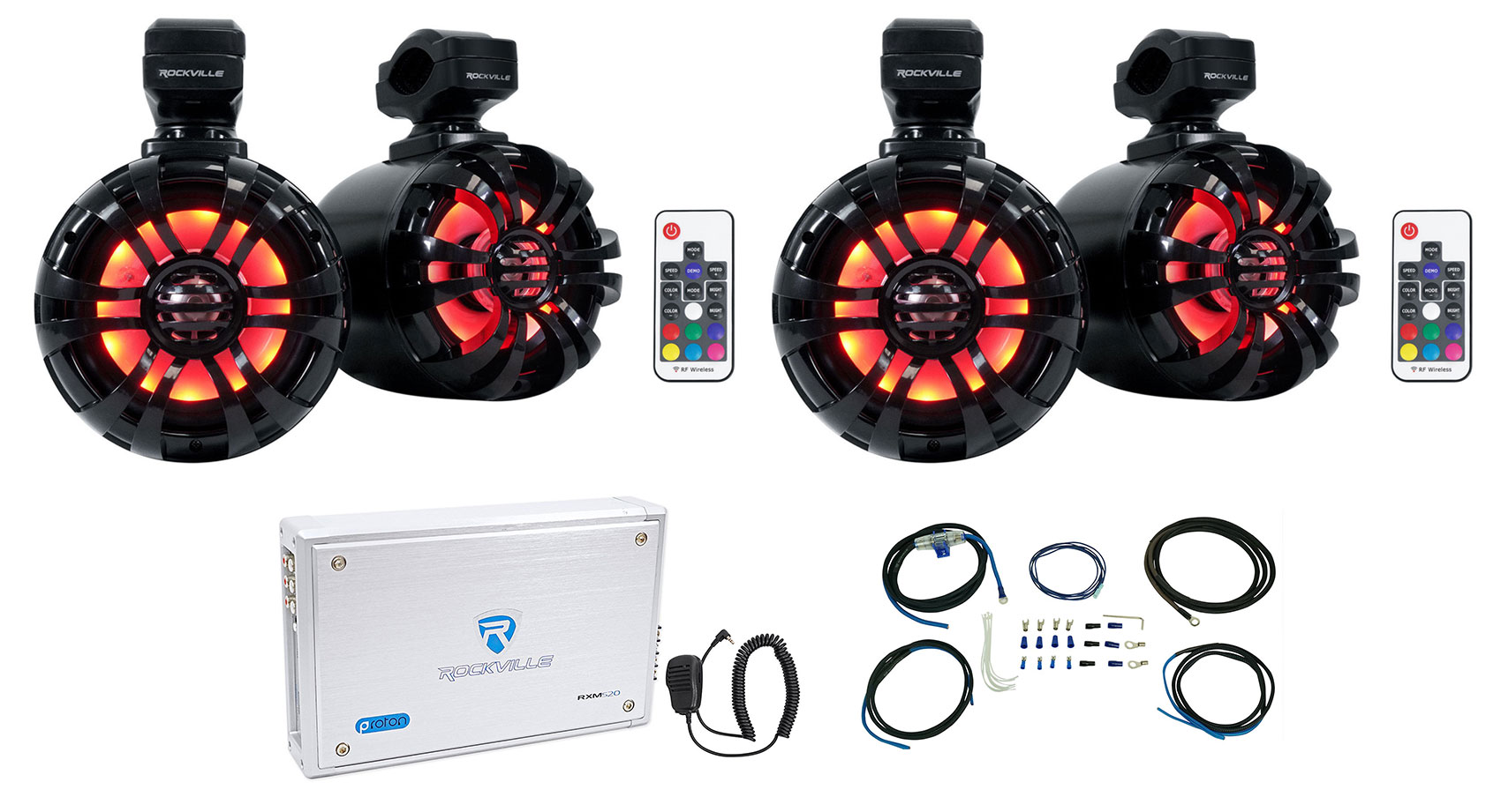 The WB50KLS 2-way marine wakeboard tower speakers with built in LED's by Rockville are great because they produce amazing bass, and clear highs in a compact enclosure that is perfect for your boat or your ATV.