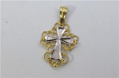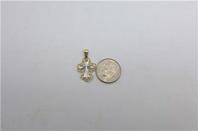 Gold Coast Jewelry presents this Cross Pendant 14KT White and Yellow Gold. This pendant measures about 7/8" long including the bail, about 1/2" wide and weighs about 0.6 grams. Please view the attached photos and also View My Other Items For Sale. Thank you.