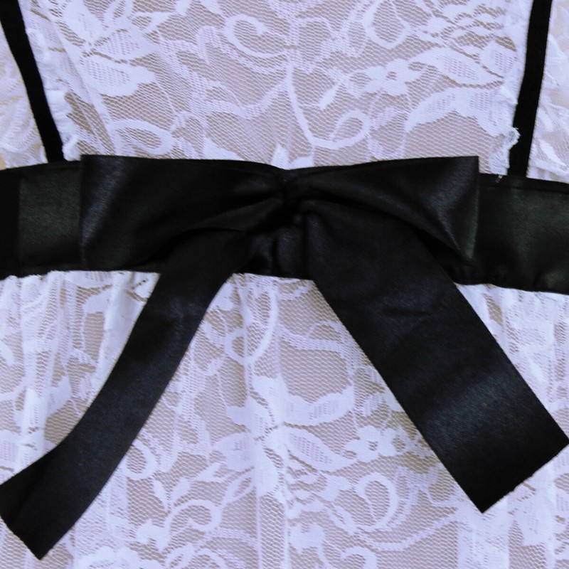 Set Include: 1pc Womens Lace Lingerie Apron Nightwear, 1pc Headband, 1pc Bowtie, 1pc G-string