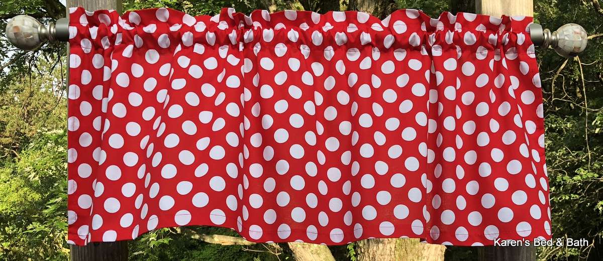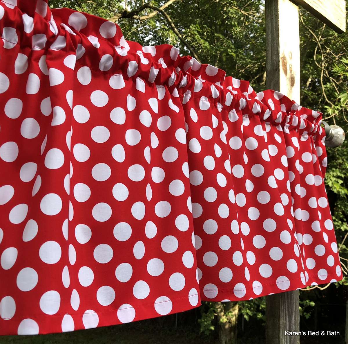 Red Polka Dot Valance 7/8 Inch White Dots on Red Farmhouse Cottage Kitchen Window Curtain Valance Panel - Choose Finished Length