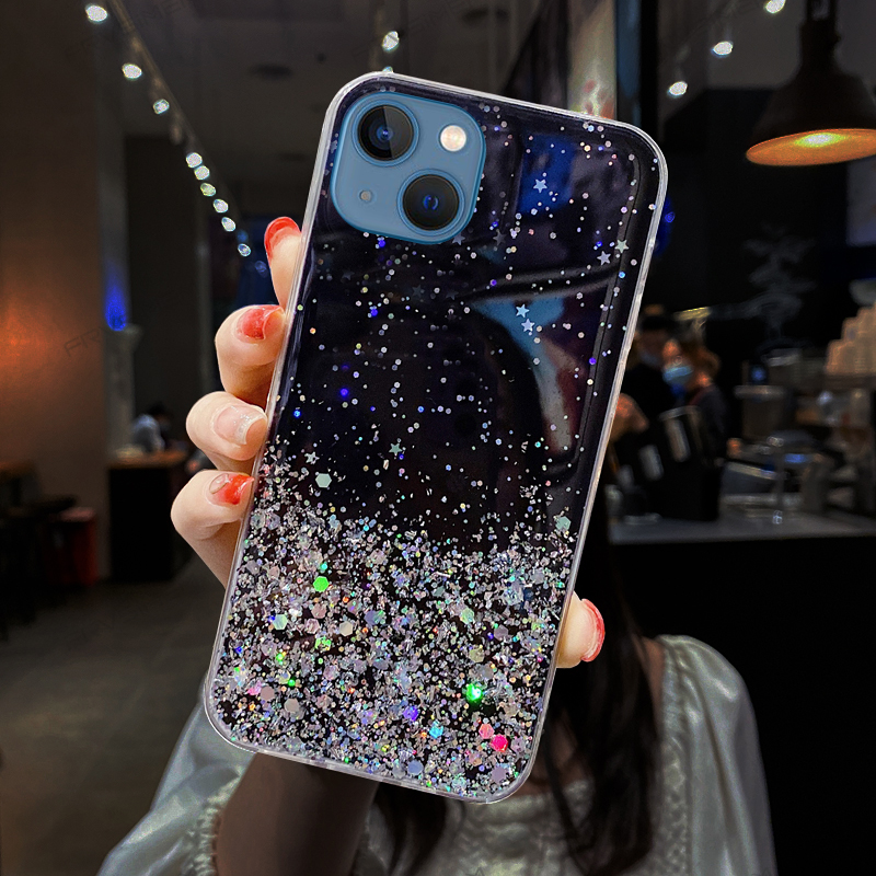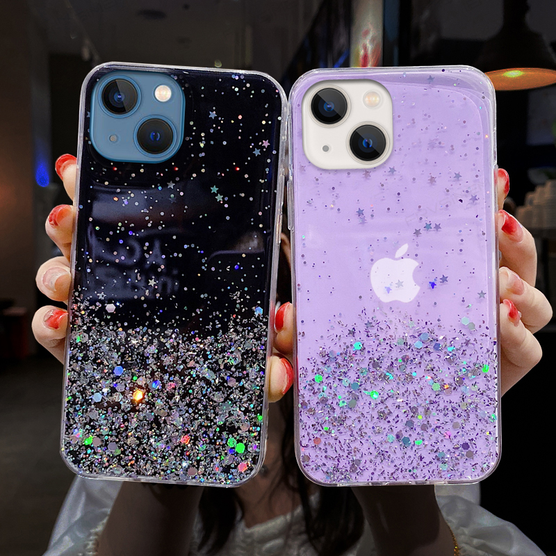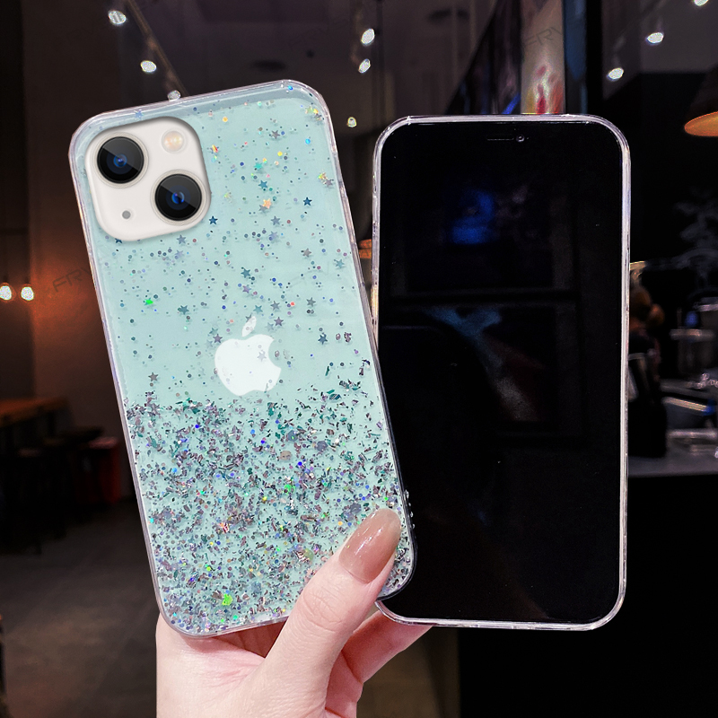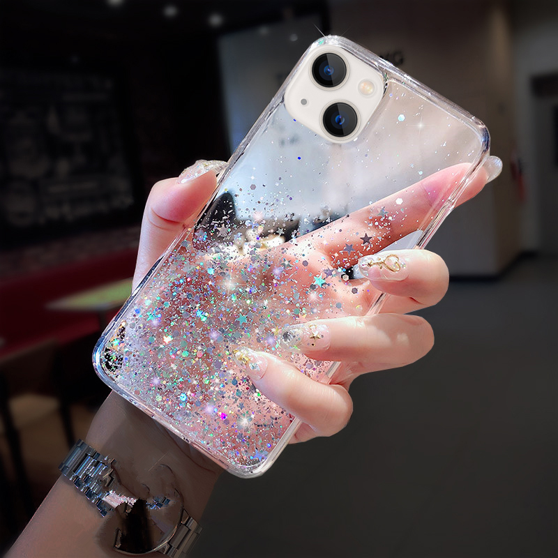 Handyhülle für iPhone 14 13 12 11 Pro Max 7 XS Glitzer Clear Silikon Schutz Case