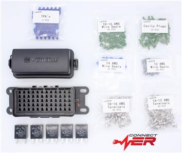 (40) 12-14 gauge terminals, (40) 16-18 gauge terminals, (40) 16-18 gauge wire seals, (20) 14 gauge wire seals, (20) 12 gauge wire seals, (20) Cavity Plugs