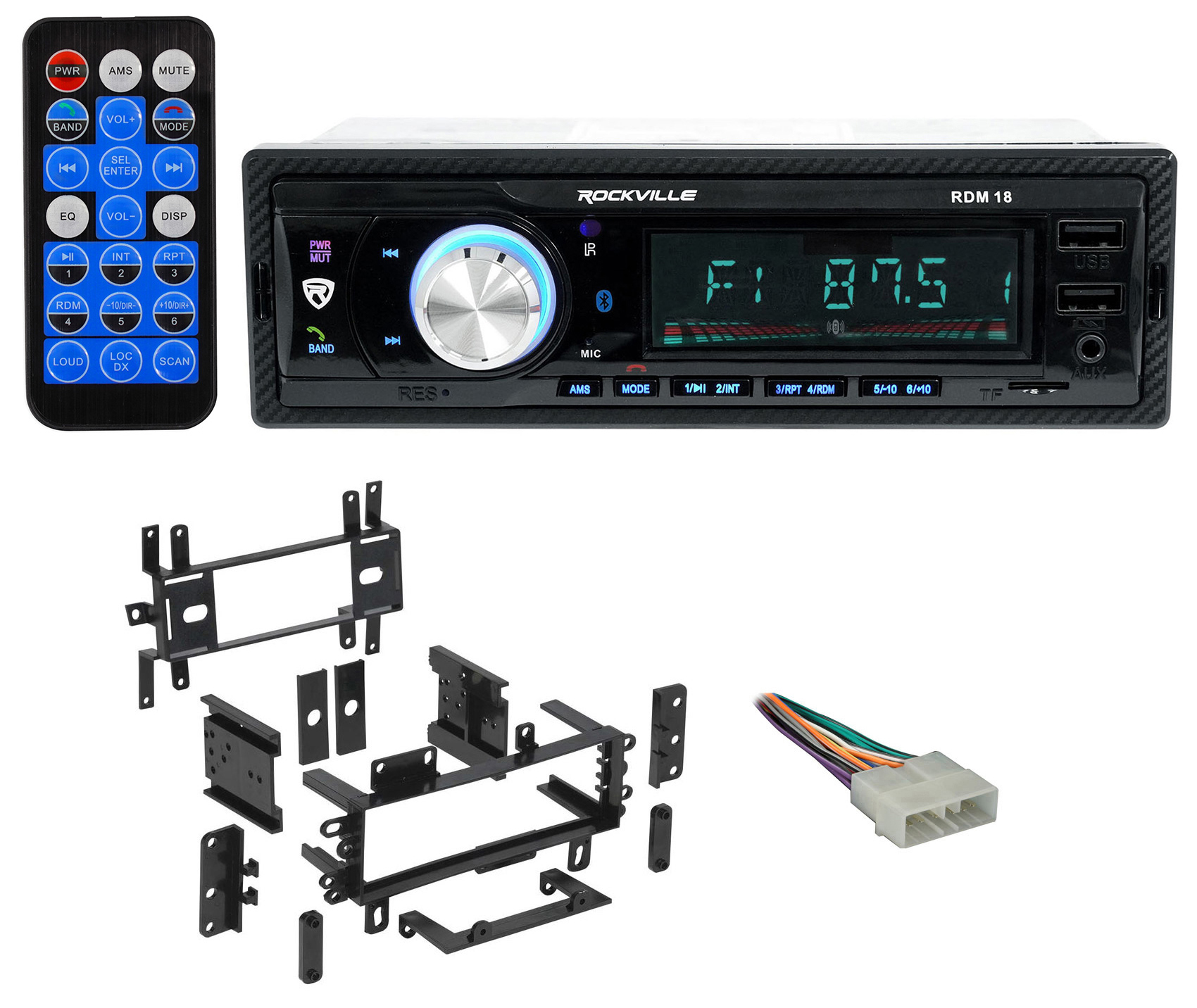 - Rockville RDM18 In-Dash Digital Media, AM/FM, MP3, USB, SD, Bluetooth Receiver with Remote