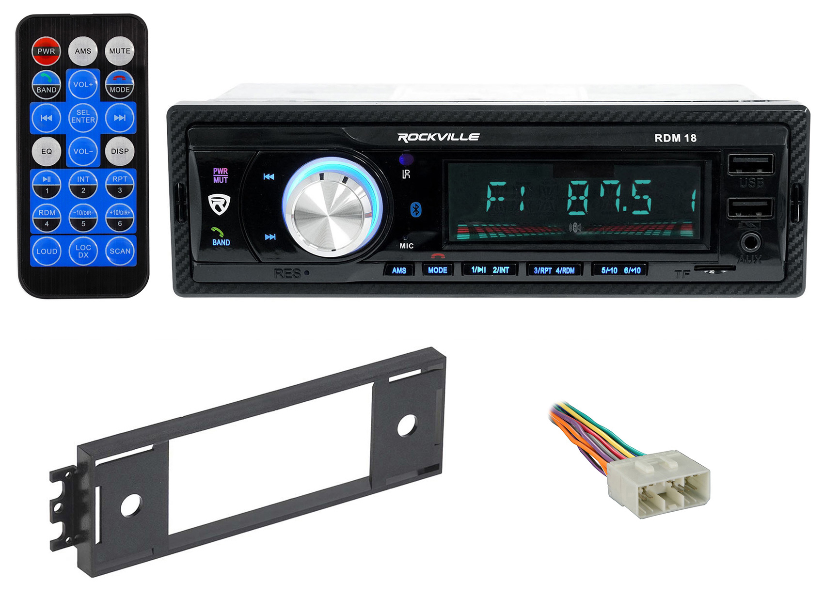 - Rockville RDM18 In-Dash Digital Media, AM/FM, MP3, USB, SD, Bluetooth Receiver with Remote