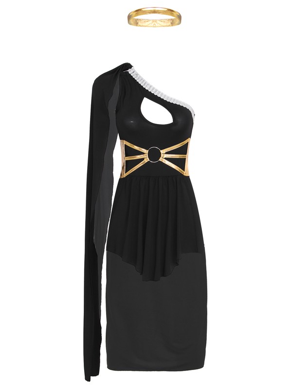 Womens Halloween Role Play Outfits Stage Performance Costume One Shoulder Dress Corset Headwear.