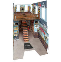 Residents of your layout will want to shop at the classic Toy & Hobby Junction. This mid-20th century era Built-&-Ready® structure features a grand staircase in the center of the two-story building. Showcase the colorful games and hobbies filling the store shelves with LED lights made for use with the Just Plug® Lighting System. View the detailed interior from windows located on every side of the building. This building is hand-painted and authentically weathered. Exterior details include bright red double doors, a train mural and a variety of signage. Toy & Hobby Junction will be available in N, HO and O scales.