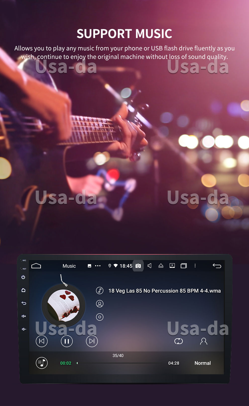 · Format: MP3/WMA/MP2/OGG/AAC/MA4/FLAC/APE/WAV etc. Could play via song list