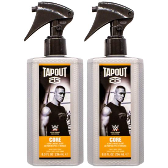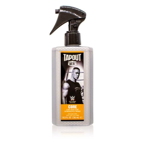 Tapout Core Body Spray for Men, 8 Oz. Be hard core with the spicy, musky scent of Tapout Core Men's Body Spray. It opens with energetic citrus notes followed by geranium and nutmeg for a masculine middle. The whole fragrance is amplified with warm amber and leather, giving it a bold impact. Step up your game with Tapout body sprays for men. It's ideal for getting you ready for the day, after a workout or when you need to smell your best. These men's fragrance sprays work as hard as you do and their distinct scent will have you ready for any challenge. This product is the official fragrance of the WWE; put it on and smell like your favorite superstar. The tough plastic bottle is ideal to take with you to the gym so you can freshen up when you need it most. Wear this spray out to casual occasions or to a date with your partner.