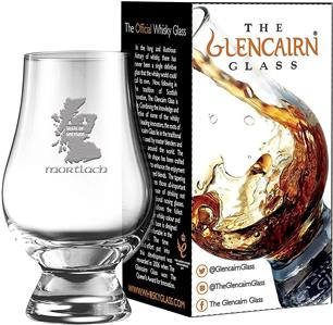 *** FOR USA CUSTOMERS AS WELL AS INTERNATIONAL CUSTOMERS, WE COMBINE MULTIPLE ITEMS SO THAT YOU MAY SAVE ON POSTAGE *** *** SEE INTERNATIONAL SHIPPING RATES AT THE BOTTOM OF THIS SCREEN *** PLEASE NOTE: WE SELL ONLY NEW AND UNUSED TASTING / NOSING GLASSES *** GUARANTEED *** This NEW, MINT 4-1/2" tall GLENCAIRN tasting glass in the thistle shape design is QUALITY ETCHED with MORTLACH. In the style of the thistle, this GLENCAIRN blenders' malt glass has the qualities needed for capturing aromas. The design allows for more concentrated nosing. This nosing glass also comes attractively gift boxed. Also good for nosing and tasting your favorite American, Canadian and / or Irish whiskey.