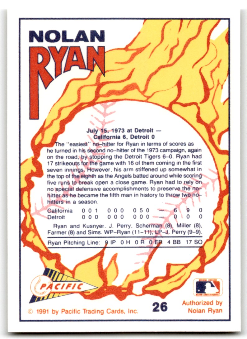 1991 Pacific Texas Express Nolan Ryan 26 No-Hitter 2