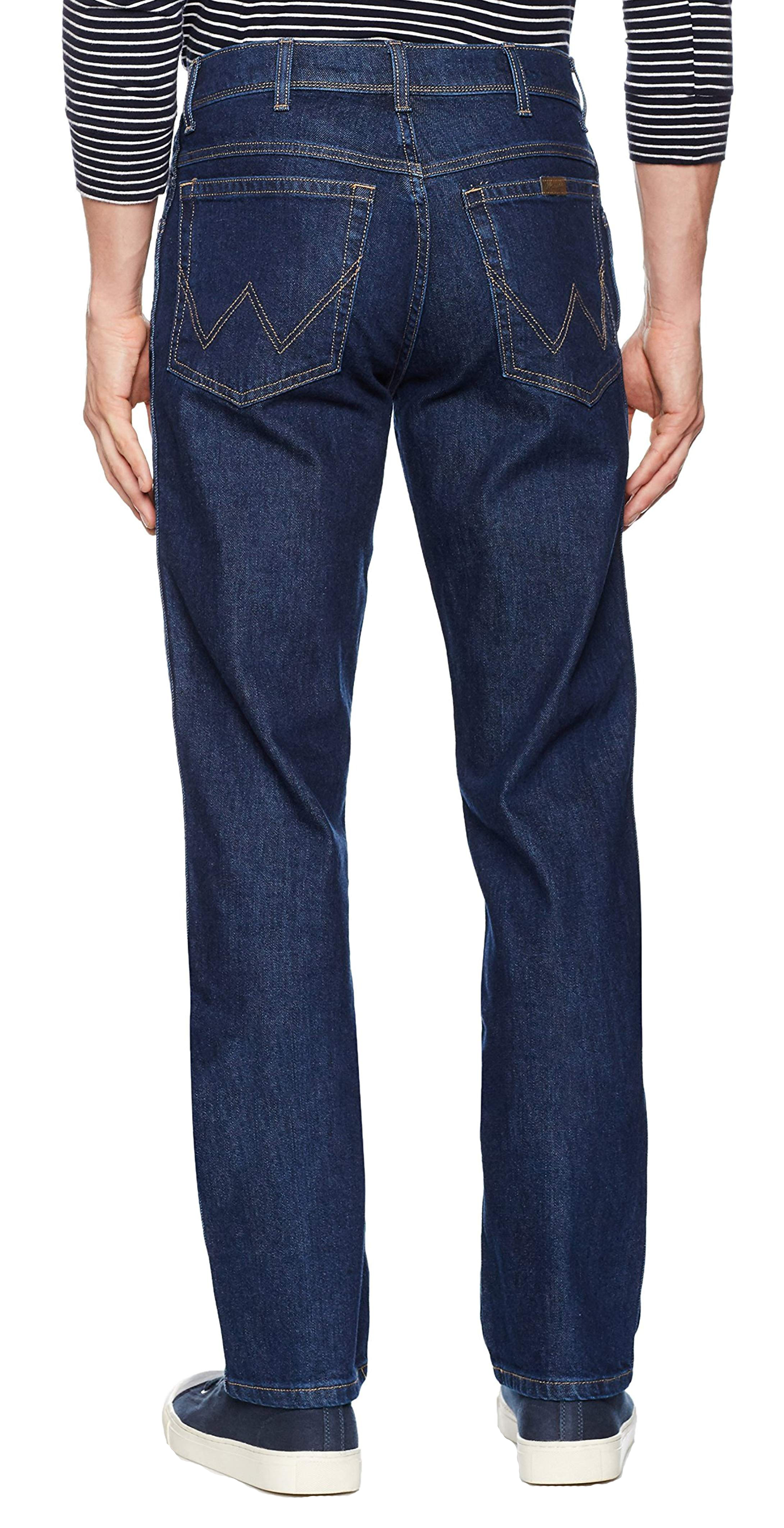 Wrangler Authentic Straight Fit Stretch Denim jeans. Additional Features
