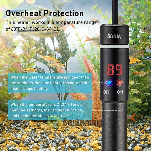 -- Fast Heating: The fish tank heating rod is made of high-quality titanium alloy, with high heat transfer efficiency, short heating time and long service life, suitable for 105 gallon aquarium.