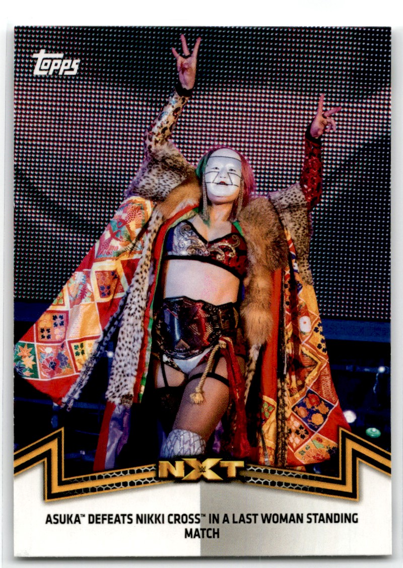 | Description: | Asuka Defeats Nikki Cross in last woman standing match | | Category: | Wrestling | | Year: | 2018 | | Product: | WWE Women's Division | | Set: | NXT Women's Division | | Card Number: | 10 | | Dimensions: | 3½" x 2½" |