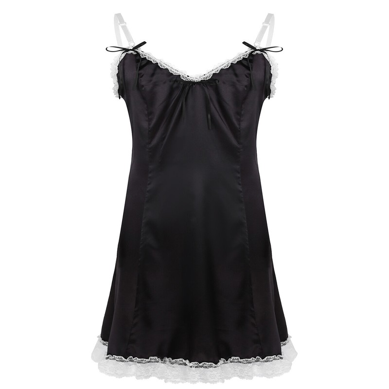 Mens sissy smooth satin fancy vintage slip dress, concealed side zipper closure.