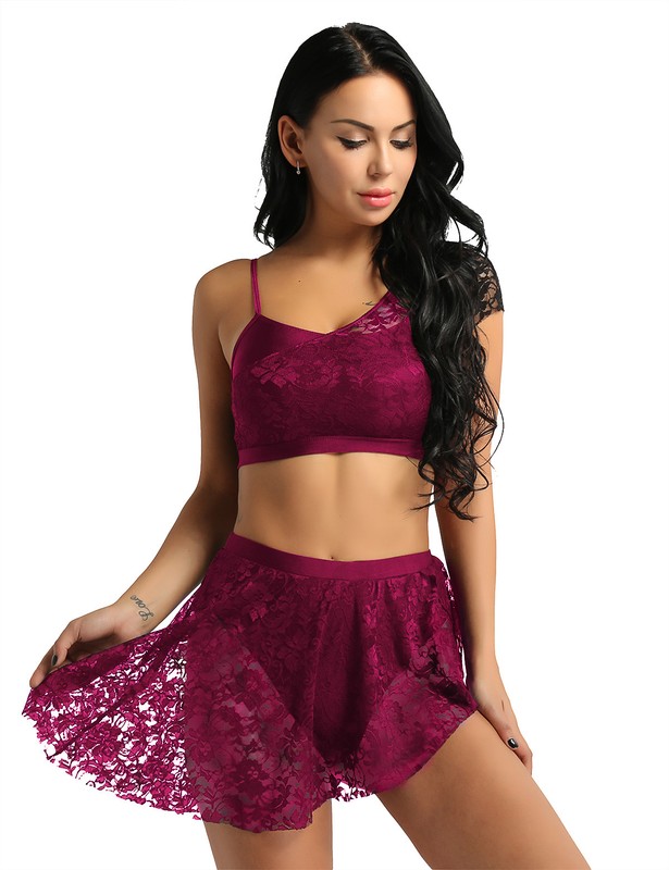 Top is sleeveless and criss cross design, cut out back; Skirt with split mesh overlay.