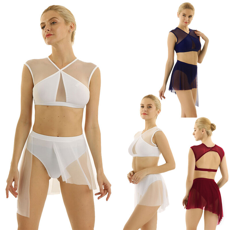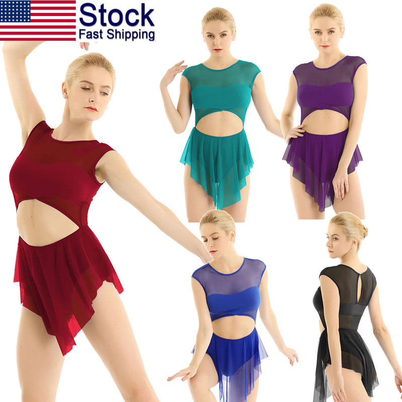 Women adult contemporary lyrical dance suit, asymmetric design.