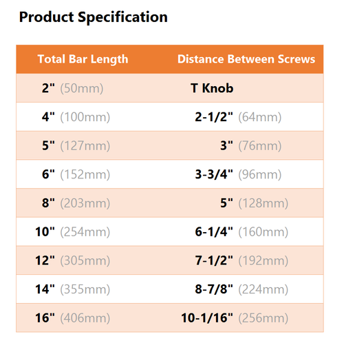 Total Bar Length 8 inch - Distance Between Screws 5 inch