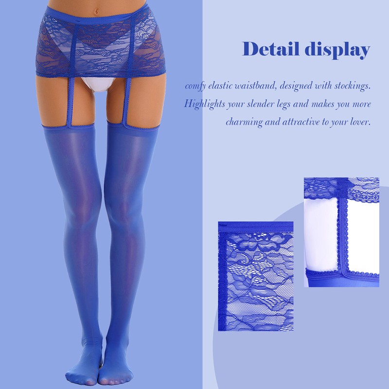 Semi see through lace mini skirt for women, comfy elastic waistband, designed with stockings.