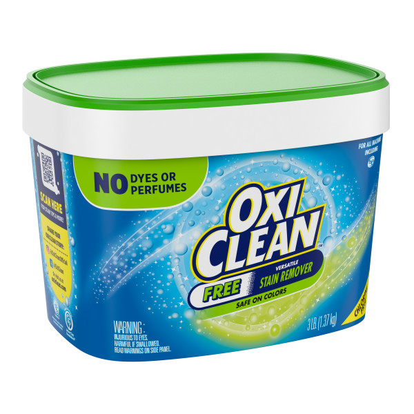 OxiClean Versatile Stain Remover Powder Free harnesses the power of oxygen to get out tough dirt, persistent spots and set-in stains, all with no dyes or perfumes! It’s the answer to almost every stain-fighting need you have. When used as directed, the oxygen-based, water-activated formula becomes a laundry stain remover that safely gets dirt and grime out of clothes. Presoak your laundry to loosen and eradicate stains. This OxiClean powder formula is free of any irritating dyes and perfumes, making it perfect for those with sensitivities. Plus, OxiClean stain remover for laundry is chlorine-free and color safe to prevent fading on your most colorful clothing. In the washer, OxiClean Versatile Stain Remover works with your regular laundry detergent to get your clothes extra clean - just pour it in the drum. In addition to removing stains from clothing, OxiClean Versatile Stain Remover comes in handy as a carpet stain remover, an upholstery cleaning solution or as a stain fighter for nearly any surface in your home. OxiClean offers a wide array of products to fit all your stain removal needs. The OxiClean family has grown to include stain removers, pretreaters, laundry sanitizers, and much more!