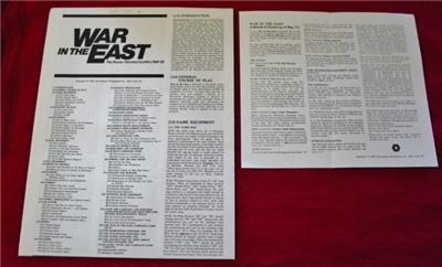 War in the East is a simulation on a Corps/Division level of the Russo-German war of 1941-1945. The game covers the entire war from the Axis invasion of Russia to the final destruction of the Axis armies four years later. The Axis player has a fixed reinforcement rate, but the Russian player must decide what type of units he wants to produce by allocating his available resources. These decisions are critical to the game as they were in the war. There are also rules for supply, weather, air power and Axis Minor allies as well as variant campaign game rules. In addition to the campaign game, there are four yearly scenarios, one for each year 1941-1944, which simulate the situation at key times during the campaign. Those scenarios cover the Barbarossa Campaign, the Stalingrad Campaign, Kursk and the Destruction of Army Group Center.