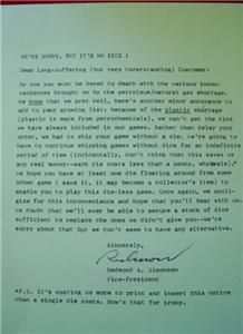 INCLUDES the GREAT OIL WAR DICE LETTER !!!