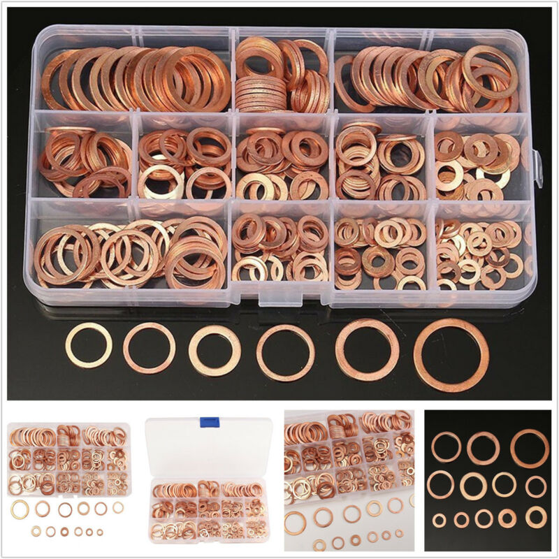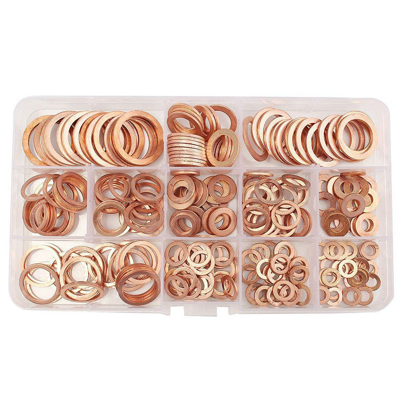 280pc Solid Copper Crush Washers Seal Sealing Flat Ring Gaskets 12Sizes Assorted
